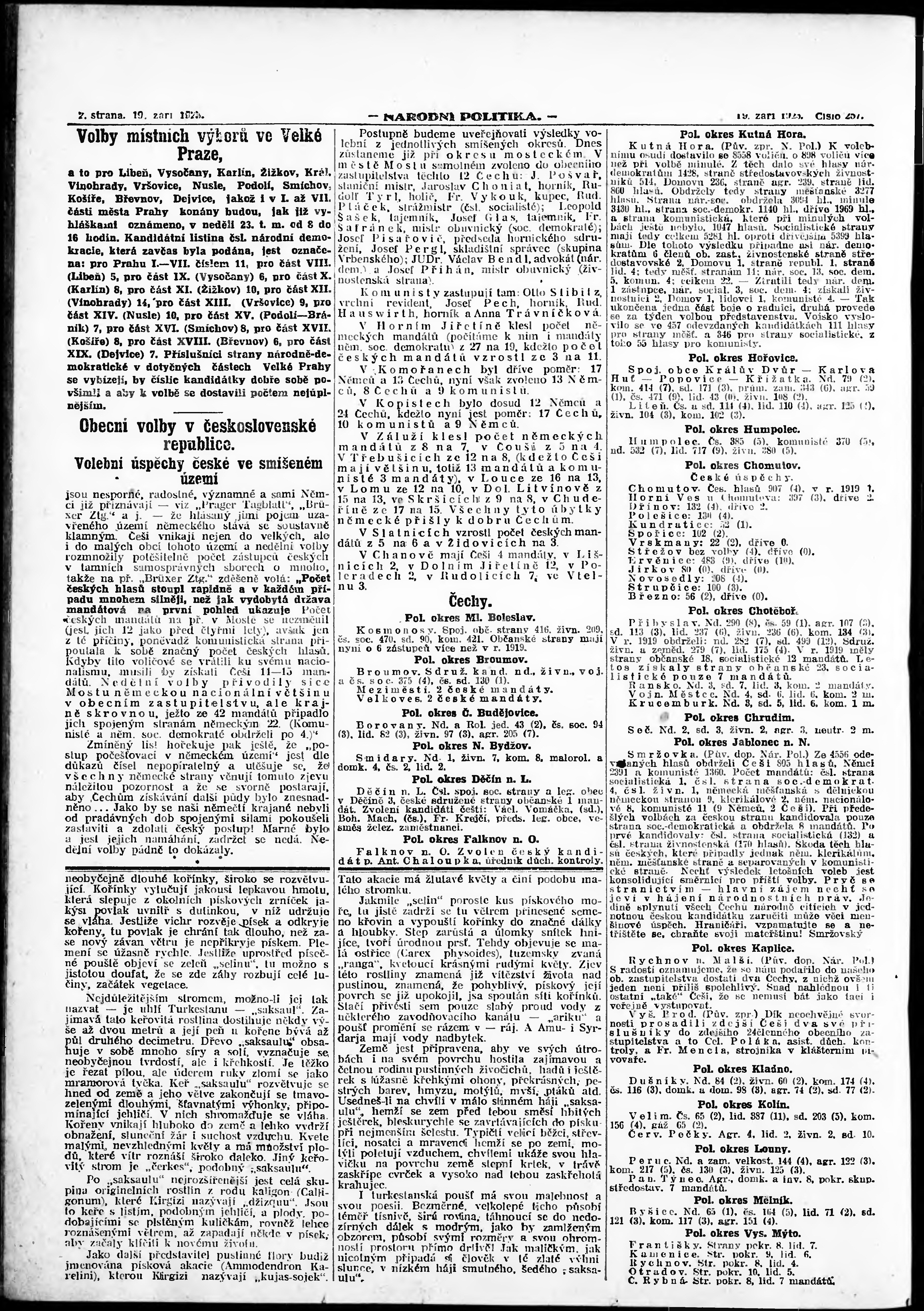 * Datum vydání výtisku: 19.9.1923 Číslo výtisku: 257 Poznámky k výtisku: ranní vydání; vydání pro Prahu;
