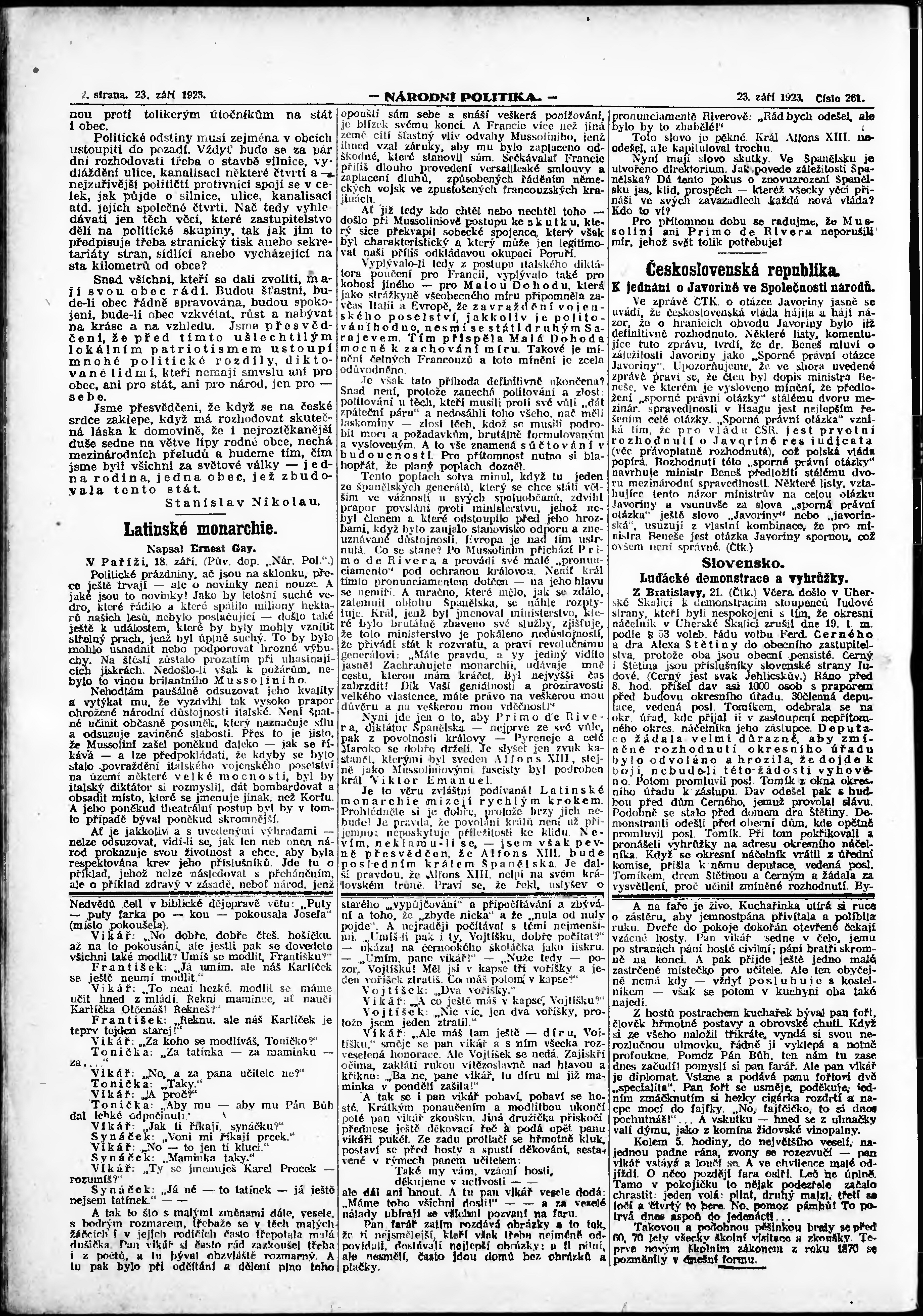 * Datum vydání výtisku: 23.9.1923 Číslo výtisku: 261 Poznámky k výtisku: ranní vydání;
