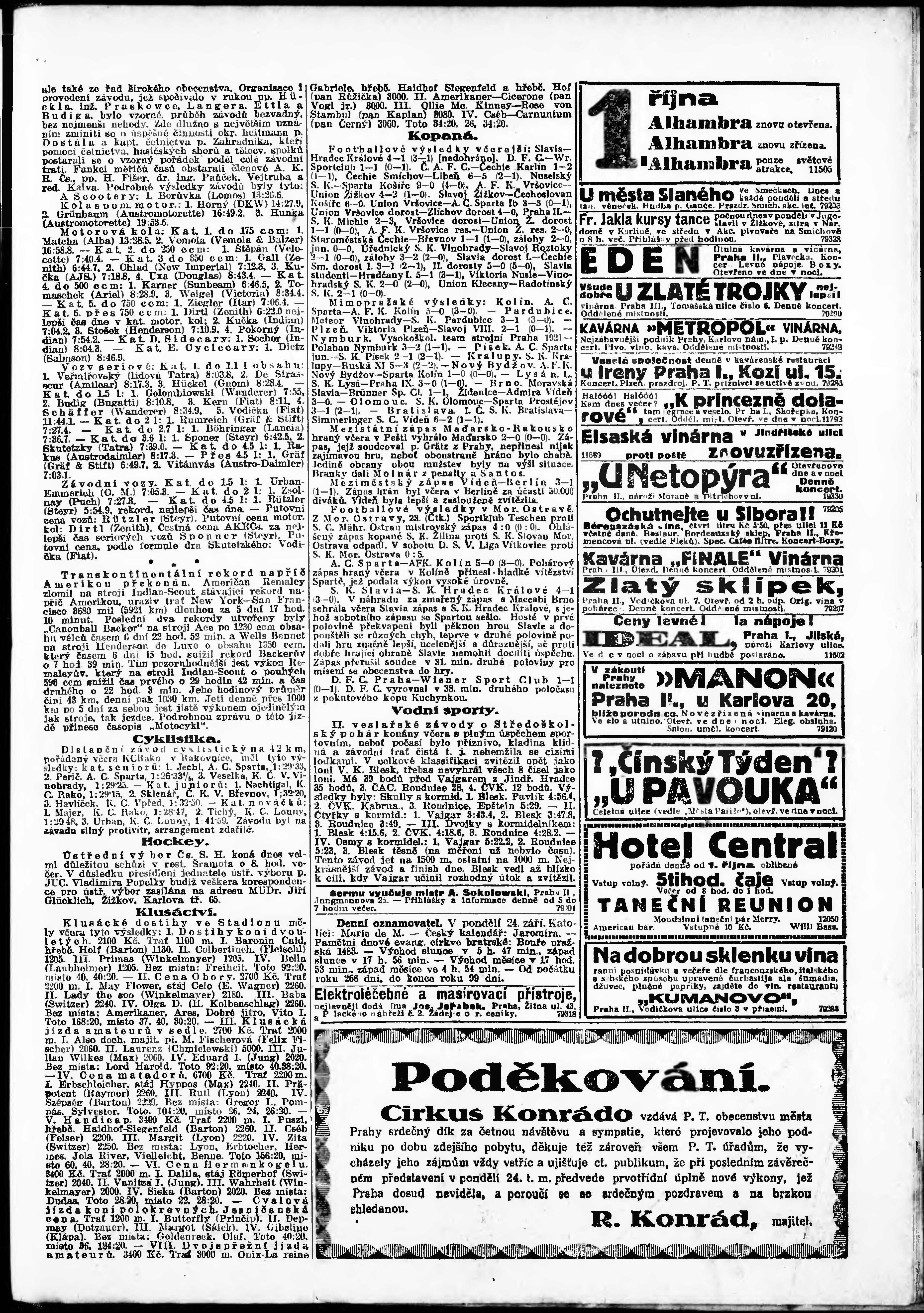 * Datum vydání výtisku: 24.9.1923 Číslo výtisku: 262 Poznámky k výtisku: odpolední vydání;