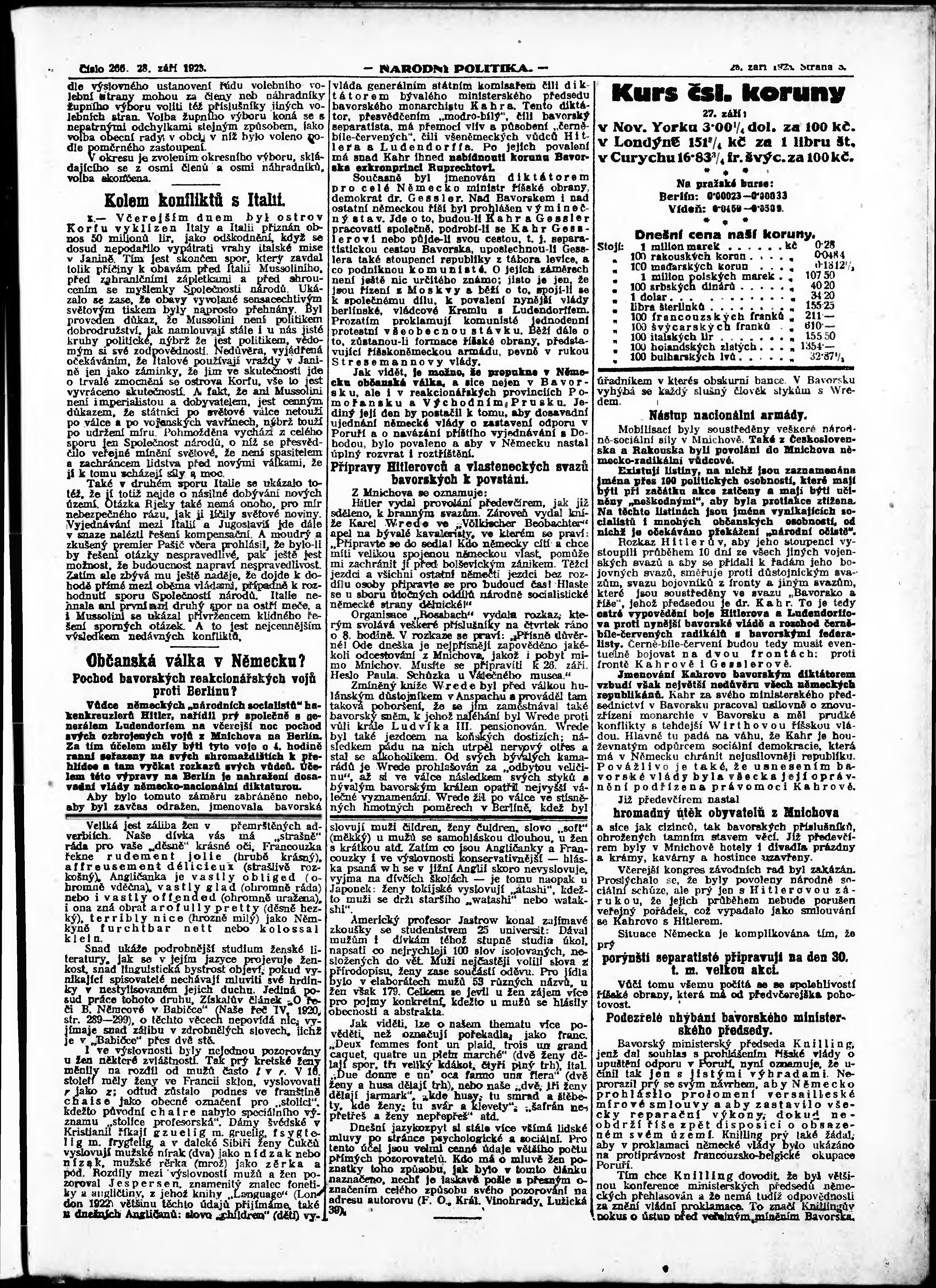 * Datum vydání výtisku: 28.9.1923 Číslo výtisku: 266 Poznámky k výtisku: ranní vydání;