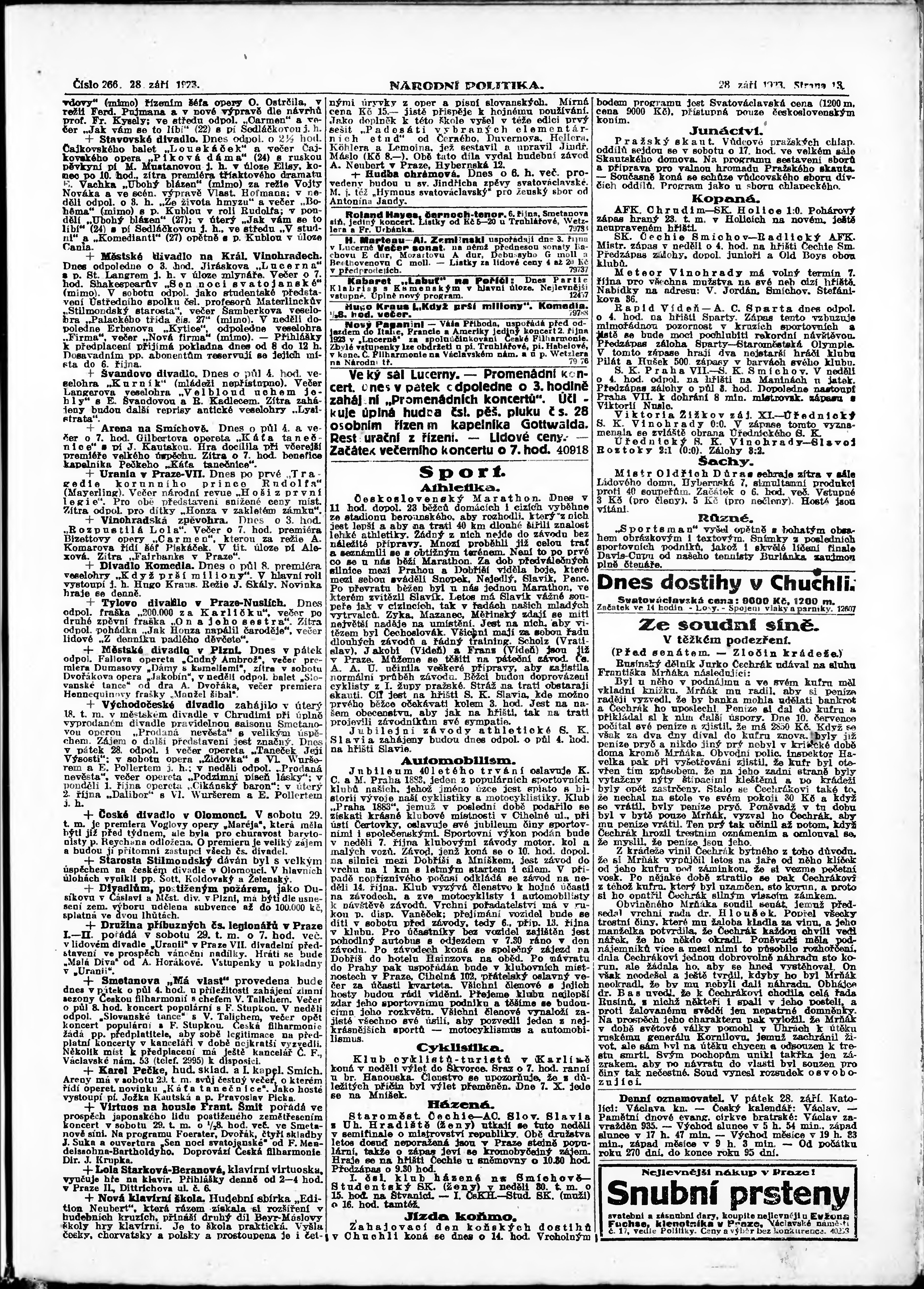 * Datum vydání výtisku: 28.9.1923 Číslo výtisku: 266 Poznámky k výtisku: ranní vydání;