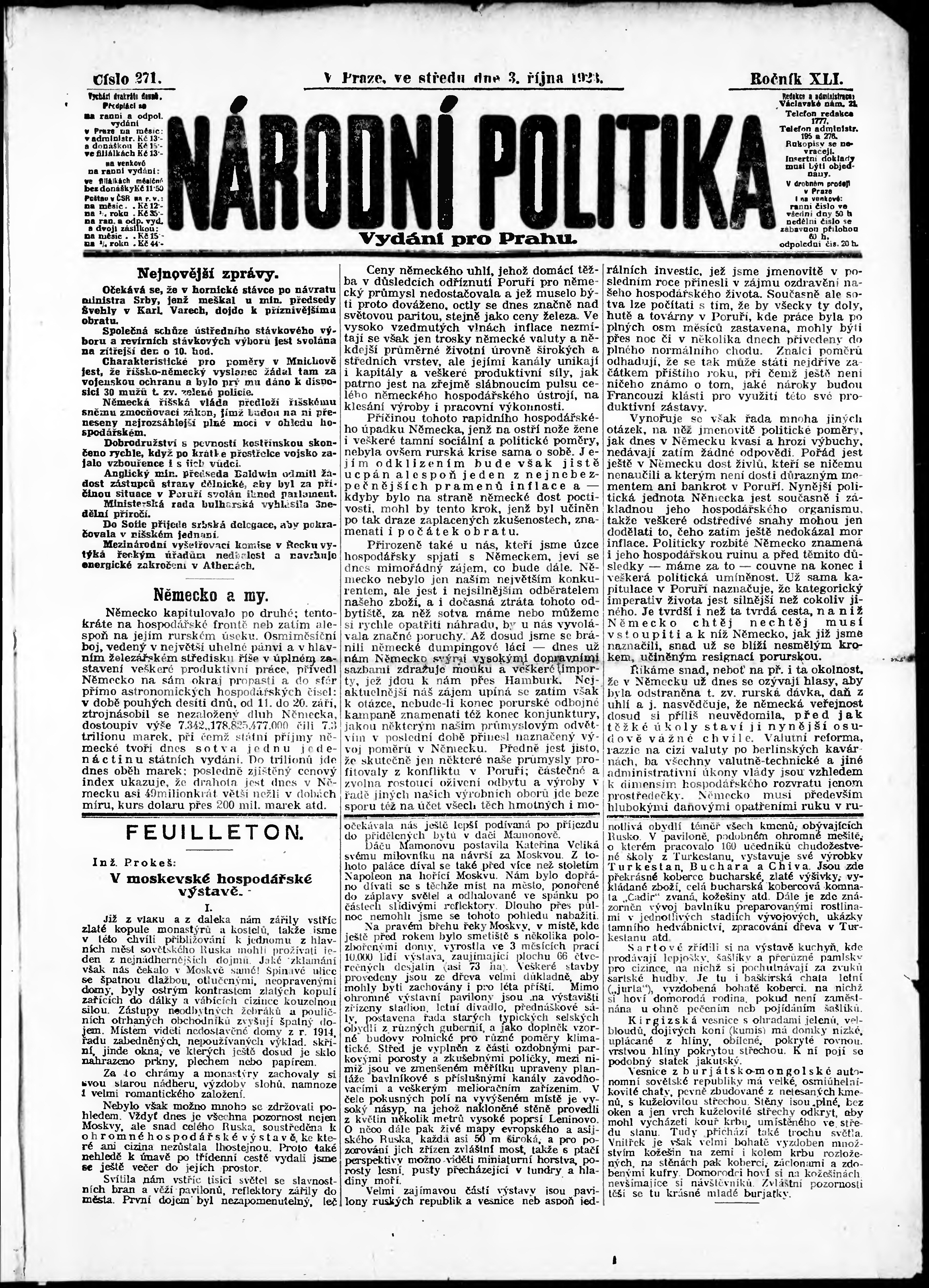 ranní vydání; vydání pro Prahu;