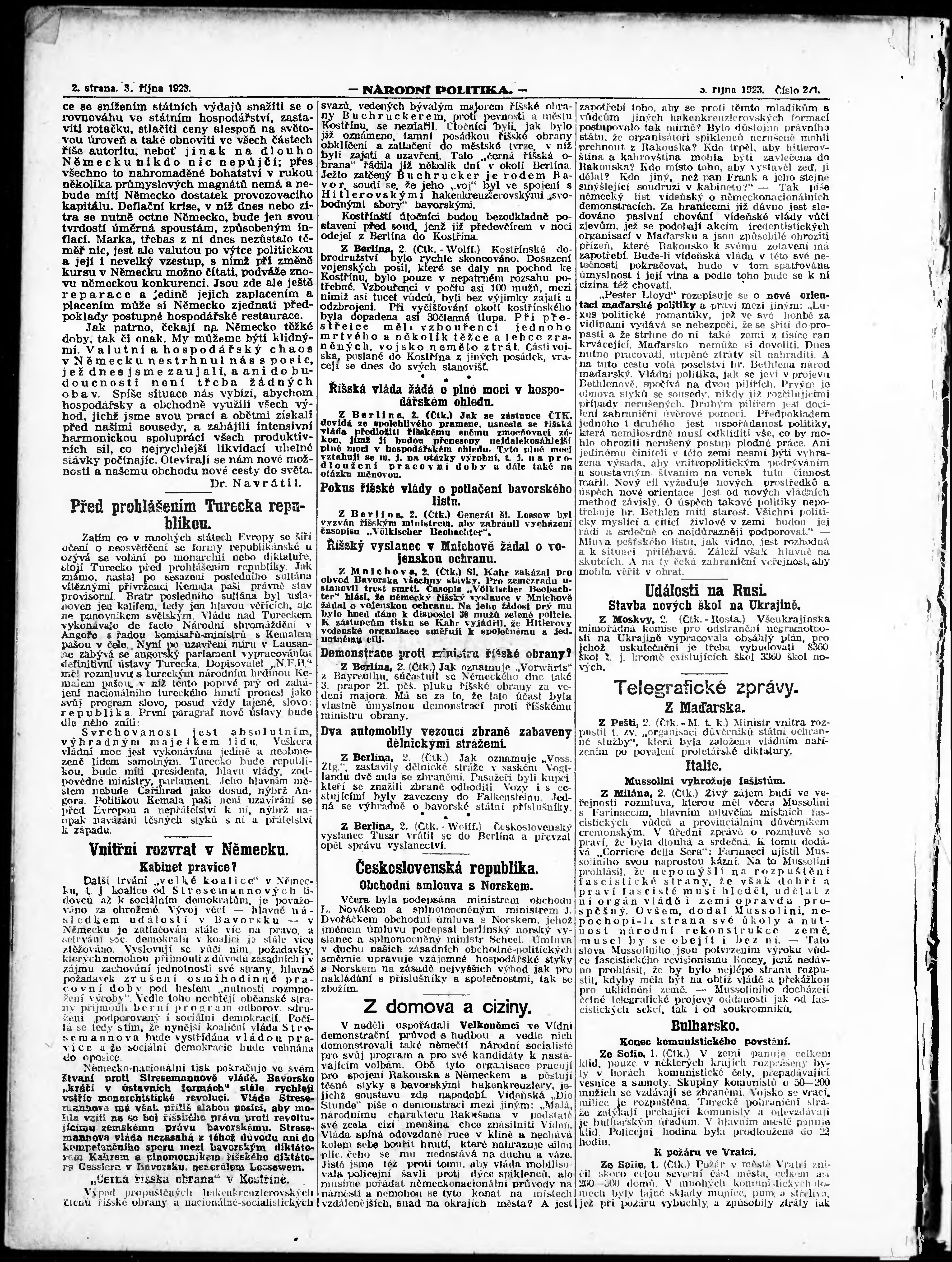 * Datum vydání výtisku: 3.10.1923 Číslo výtisku: 271 Poznámky k výtisku: ranní vydání; vydání pro Prahu;