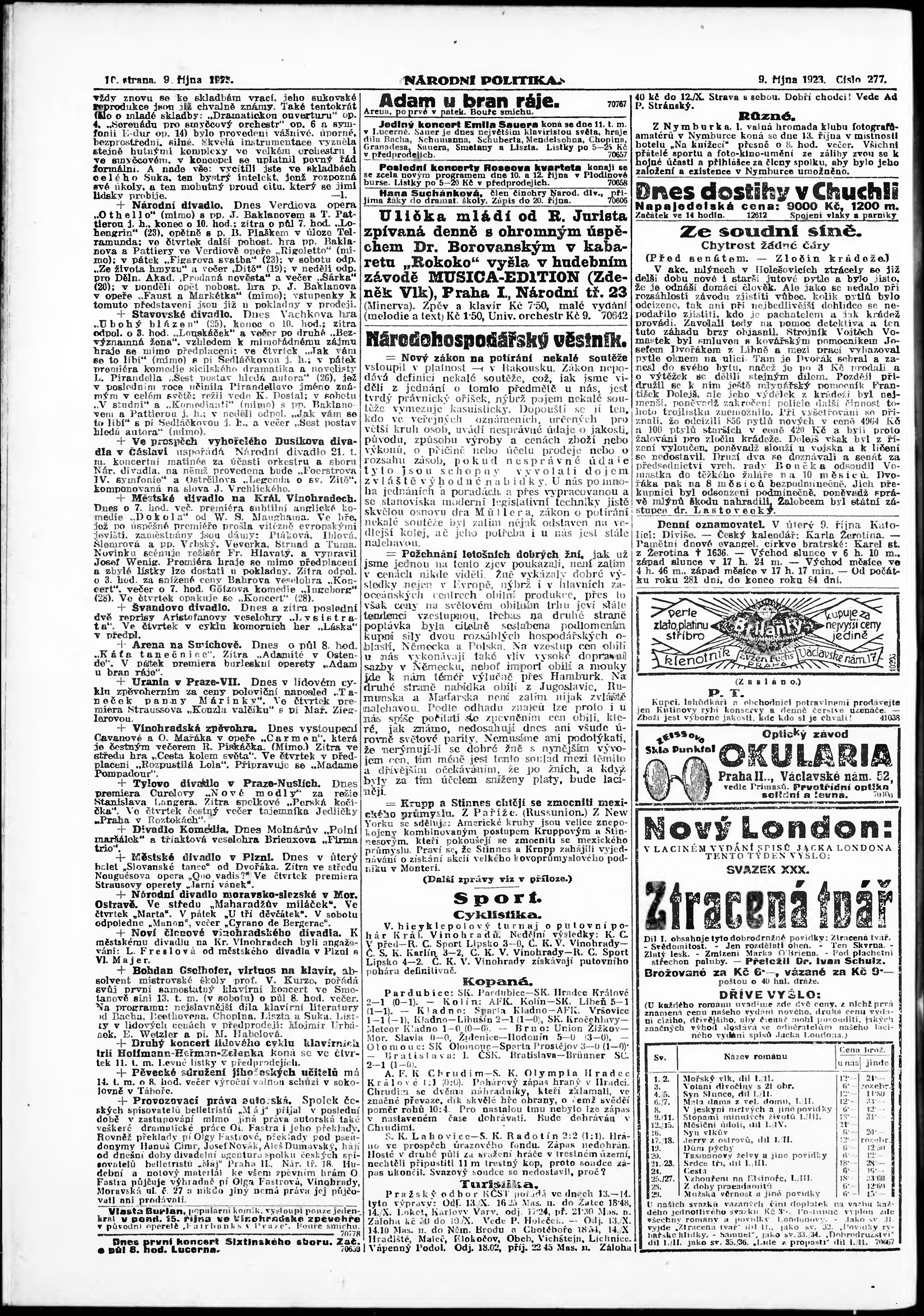 ranní vydání; vydání pro Prahu;