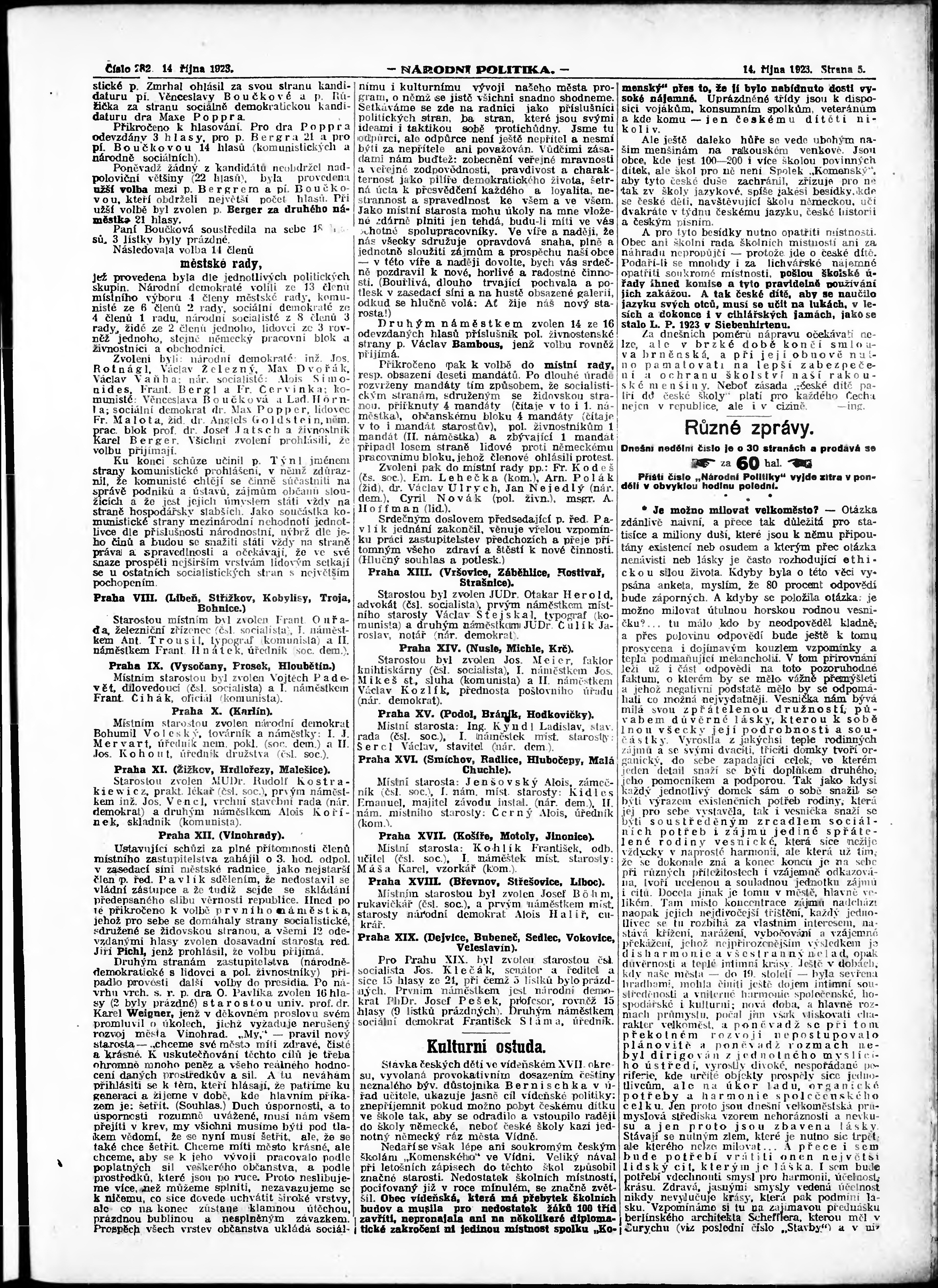 * Datum vydání výtisku: 14.10.1923 Číslo výtisku: 282 Poznámky k výtisku: ranní vydání;