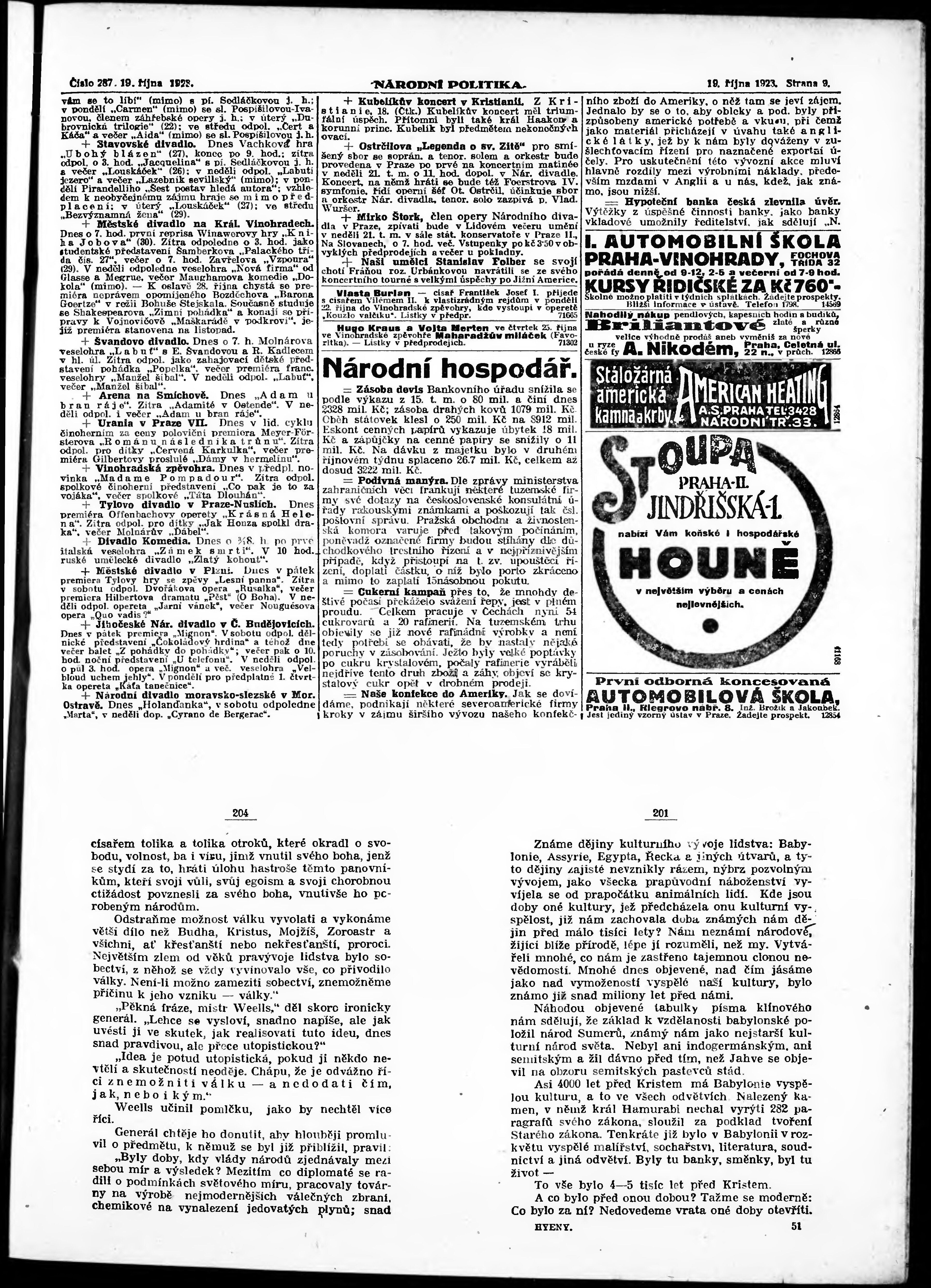 * Datum vydání výtisku: 19.10.1923 Číslo výtisku: 287 Poznámky k výtisku: ranní vydání; vydání pro Prahu;