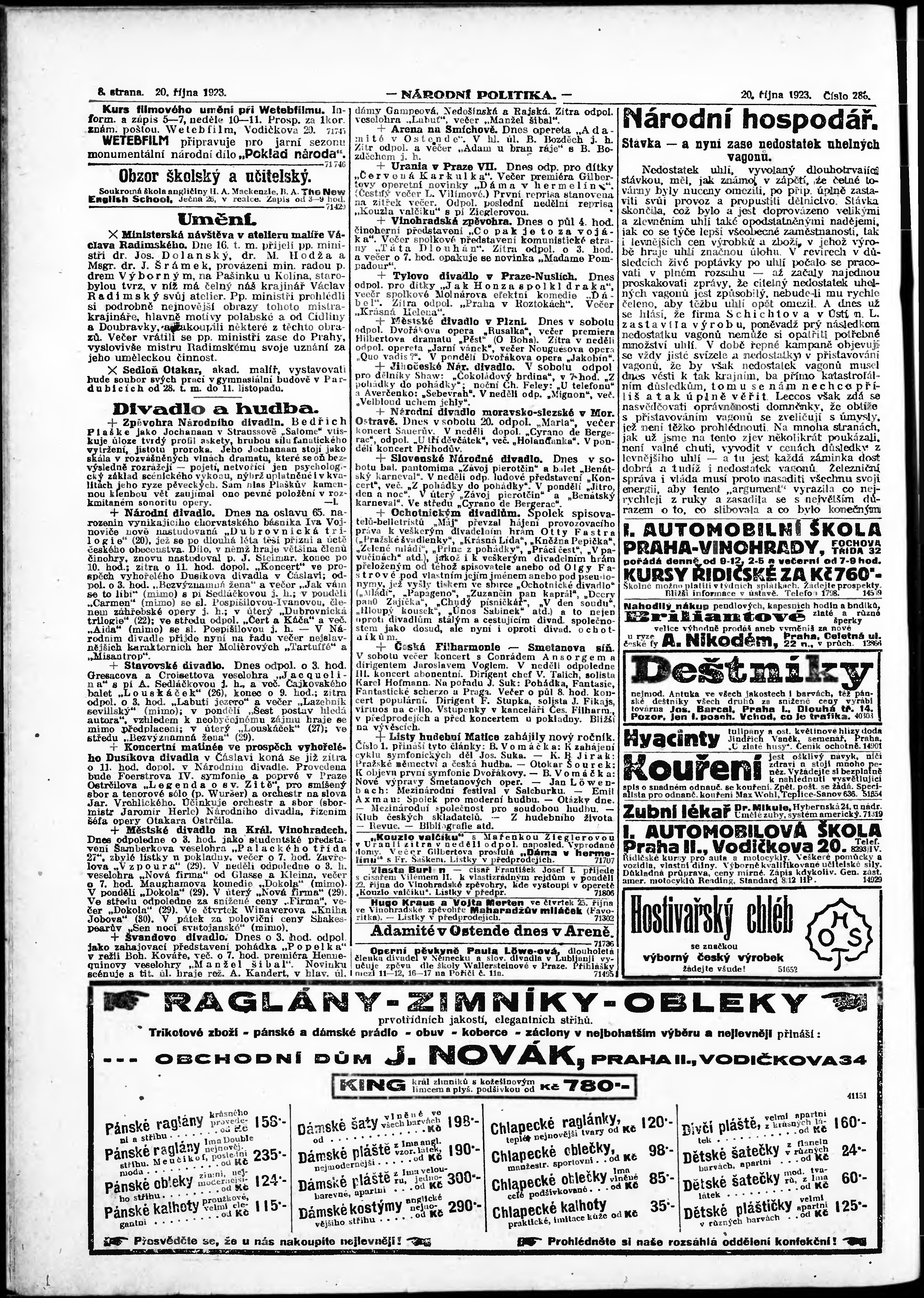 * Datum vydání výtisku: 20.10.1923 Číslo výtisku: 288 Poznámky k výtisku: ranní vydání; vydání pro Prahu;