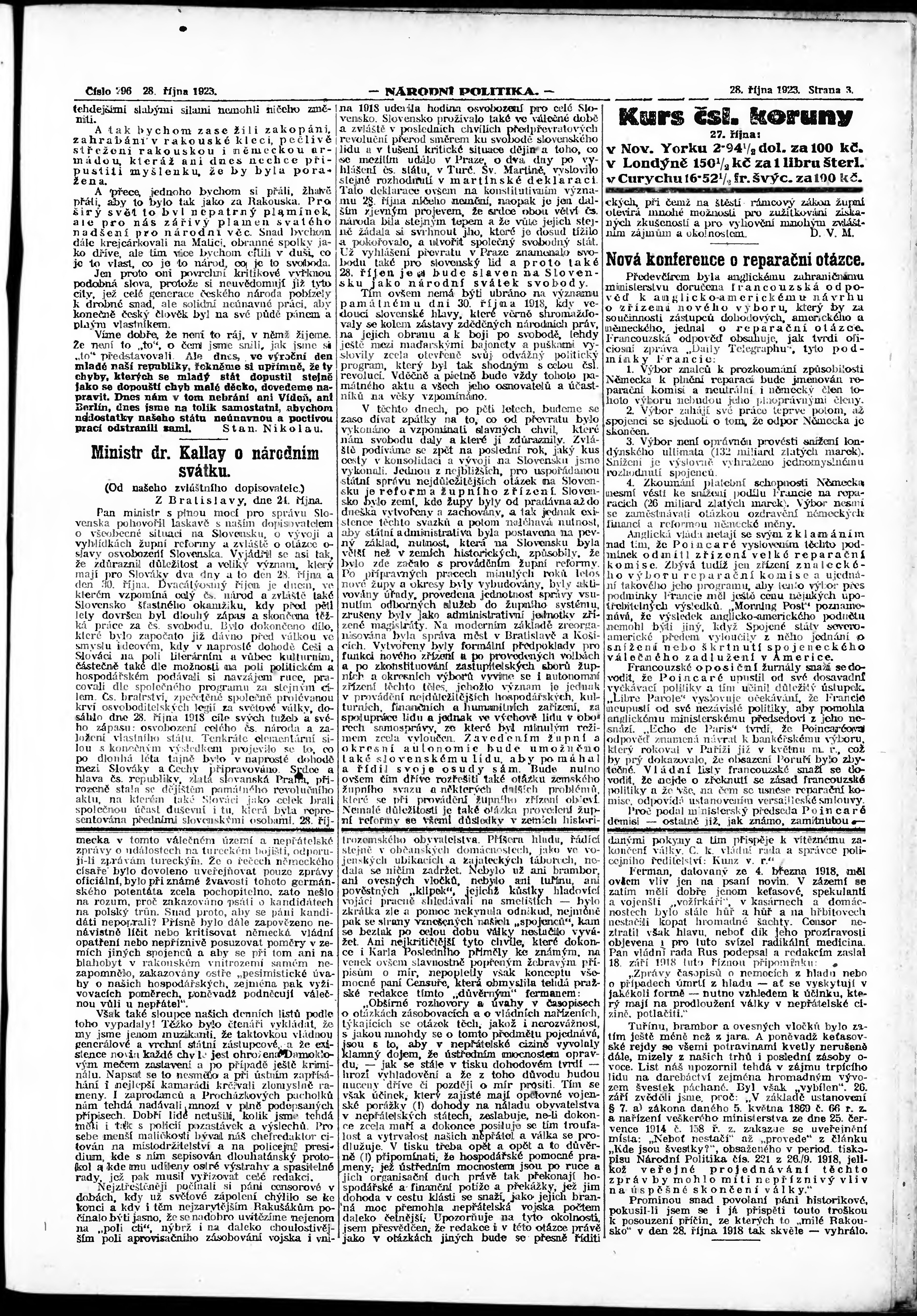 * Datum vydání výtisku: 28.10.1923 Číslo výtisku: 296 Poznámky k výtisku: ranní vydání;