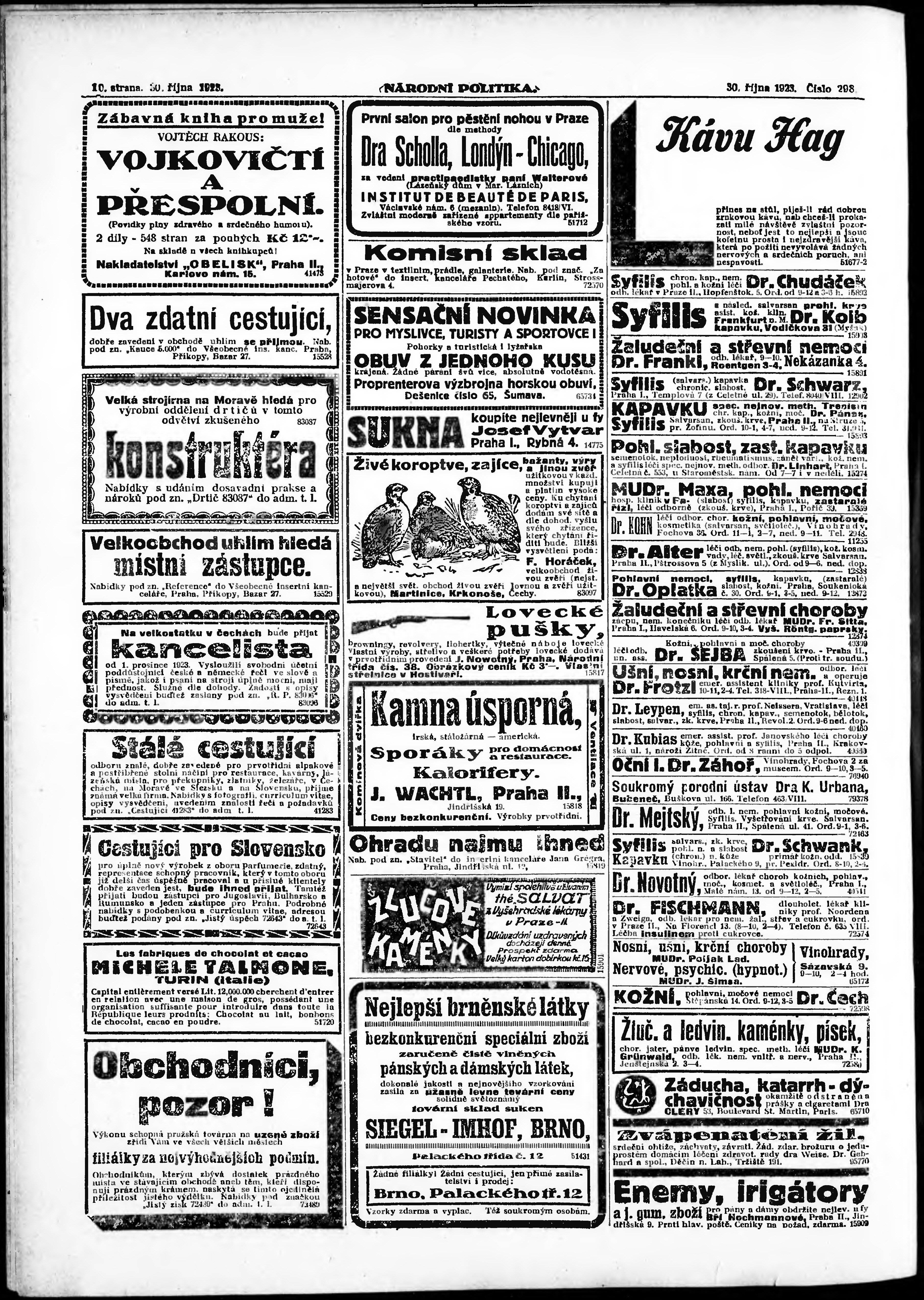 * Datum vydání výtisku: 30.10.1923 Číslo výtisku: 298 Poznámky k výtisku: ranní vydání; vydání pro Prahu;