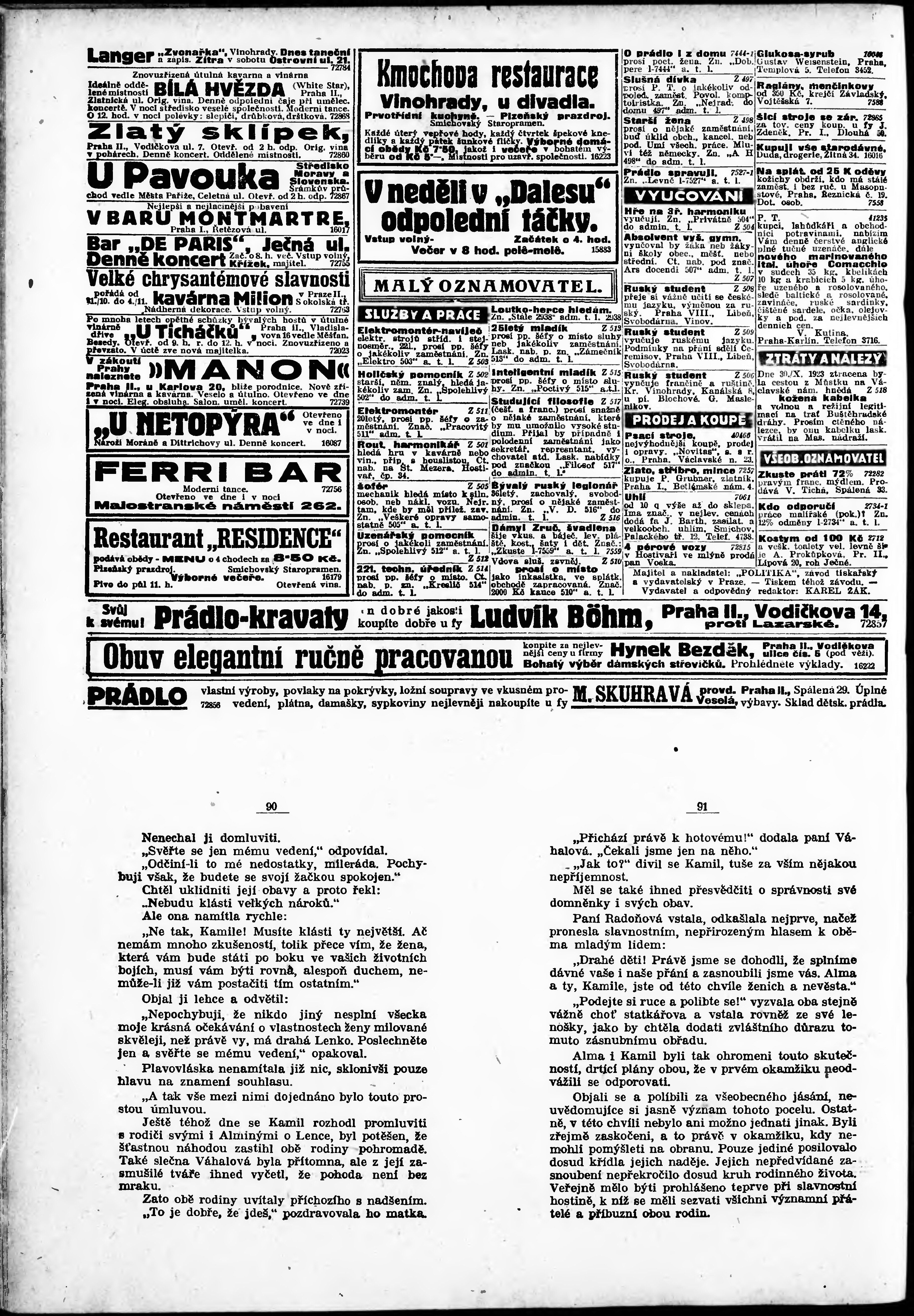* Datum vydání výtisku: 2.11.1923 Číslo výtisku: 301 Poznámky k výtisku: odpolední vydání;