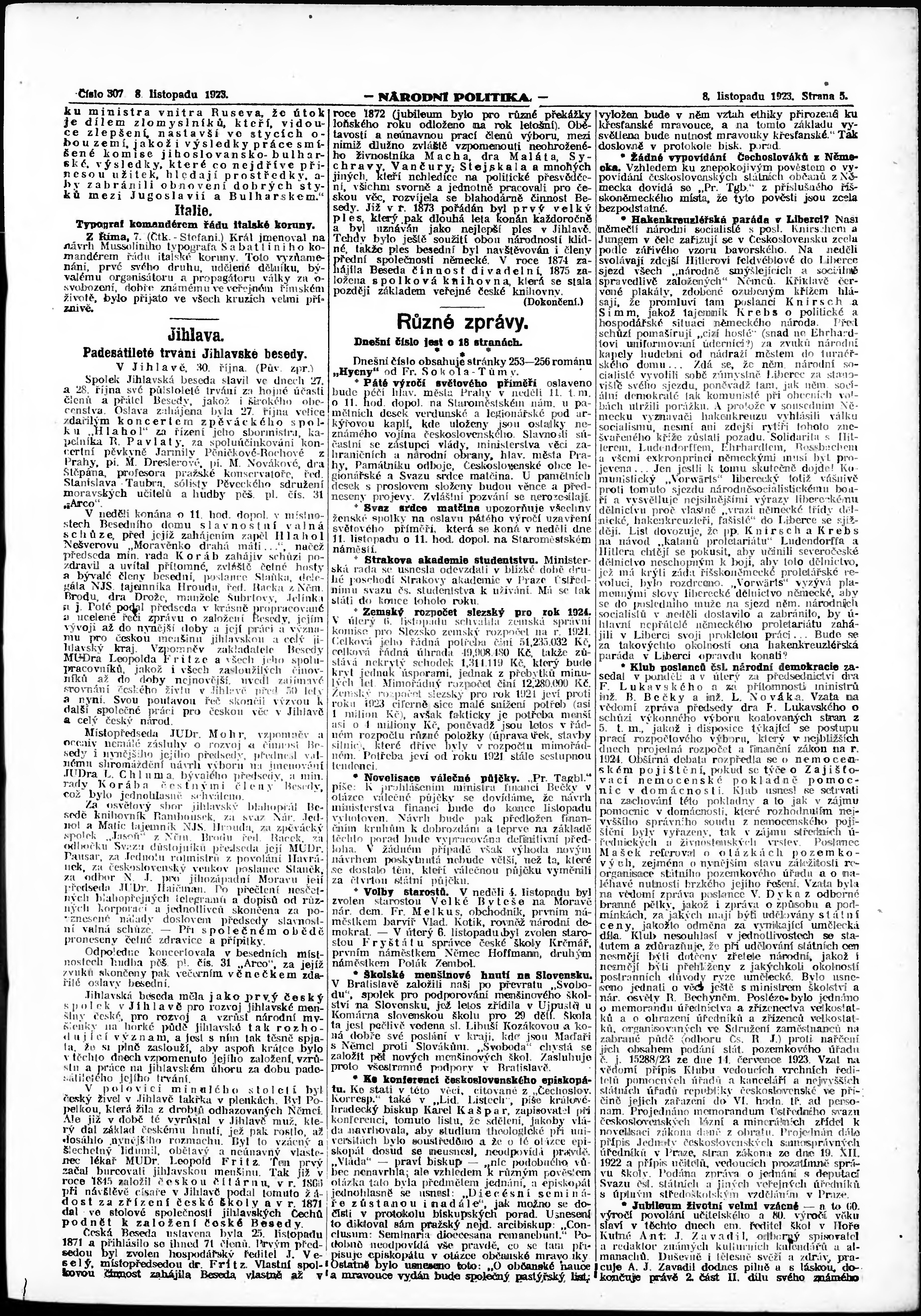 * Datum vydání výtisku: 8.11.1923 Číslo výtisku: 307 Poznámky k výtisku: ranní vydání; vydání pro Prahu;