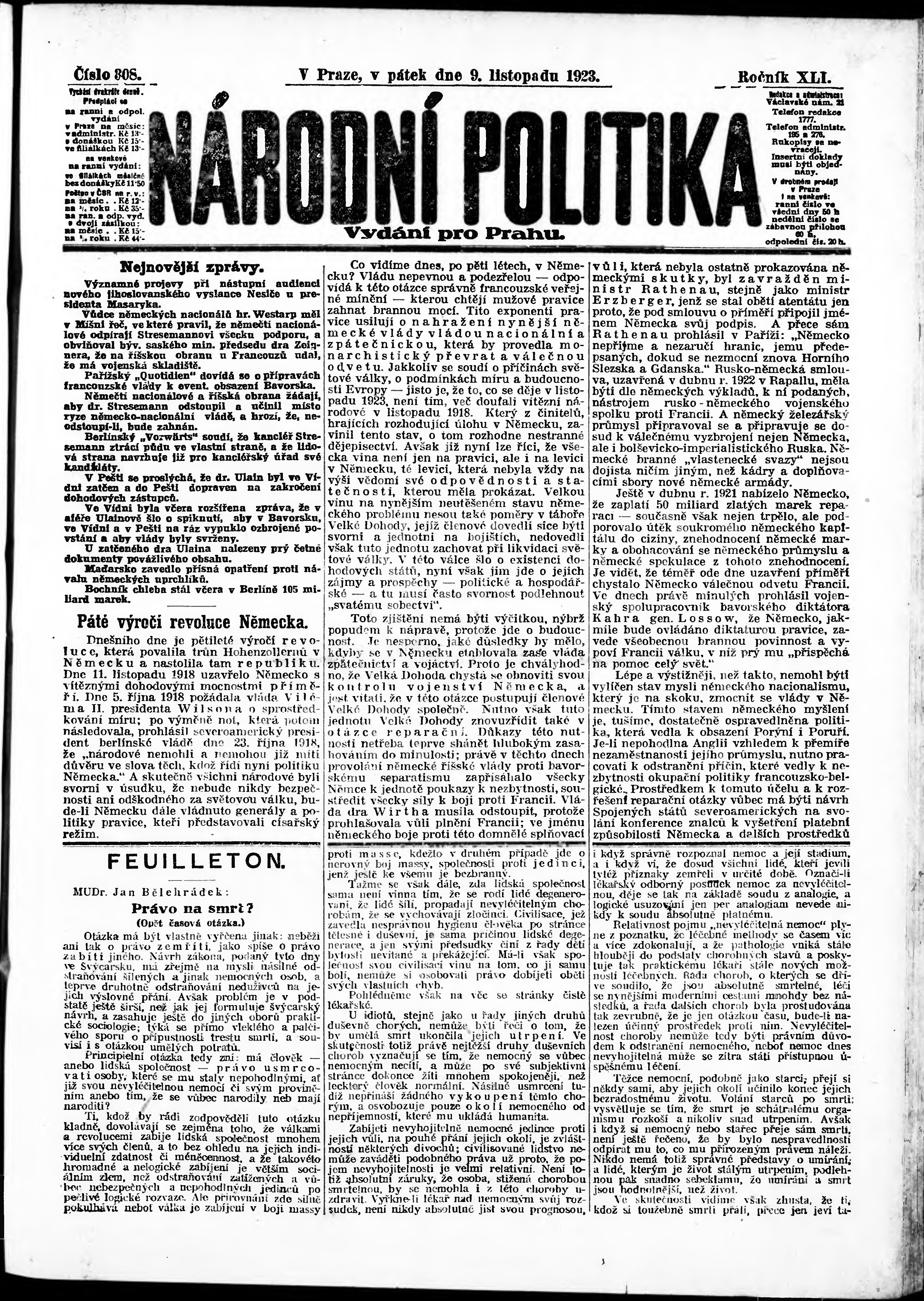 ranní vydání; vydání pro Prahu;