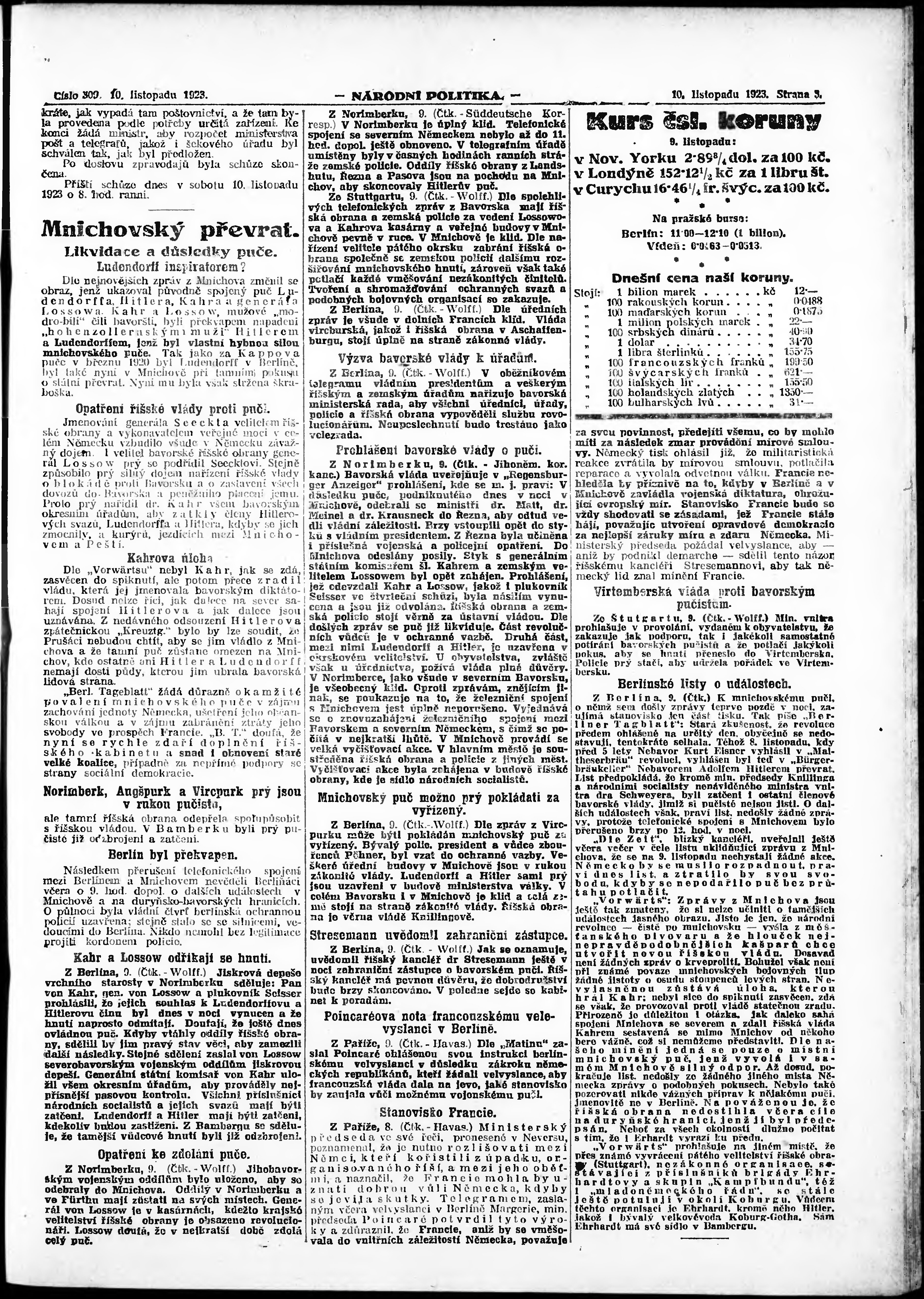 * Datum vydání výtisku: 10.11.1923 Číslo výtisku: 309 Poznámky k výtisku: ranní vydání; vydání pro Prahu;