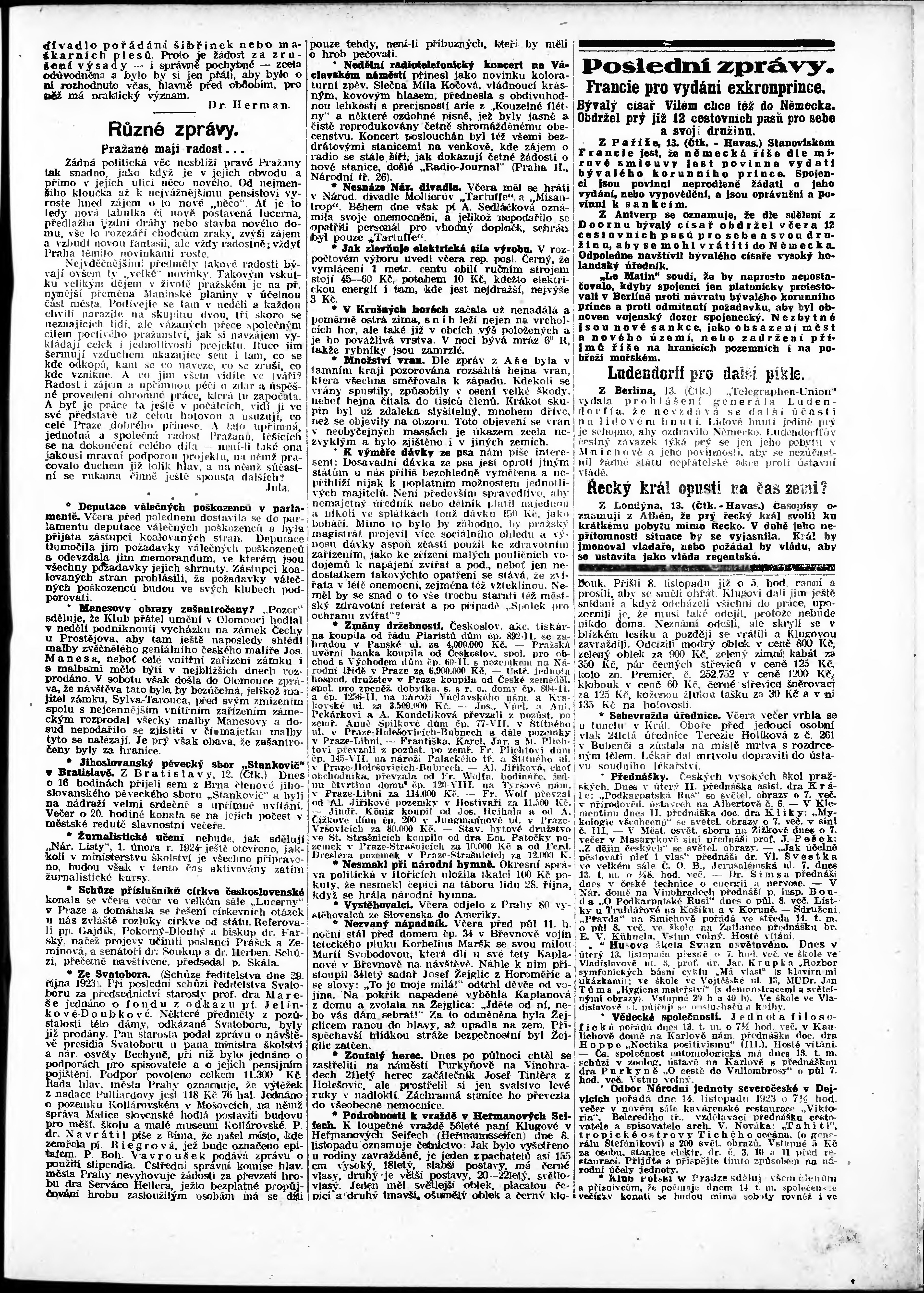 * Datum vydání výtisku: 13.11.1923 Číslo výtisku: 312 Poznámky k výtisku: odpolední vydání;