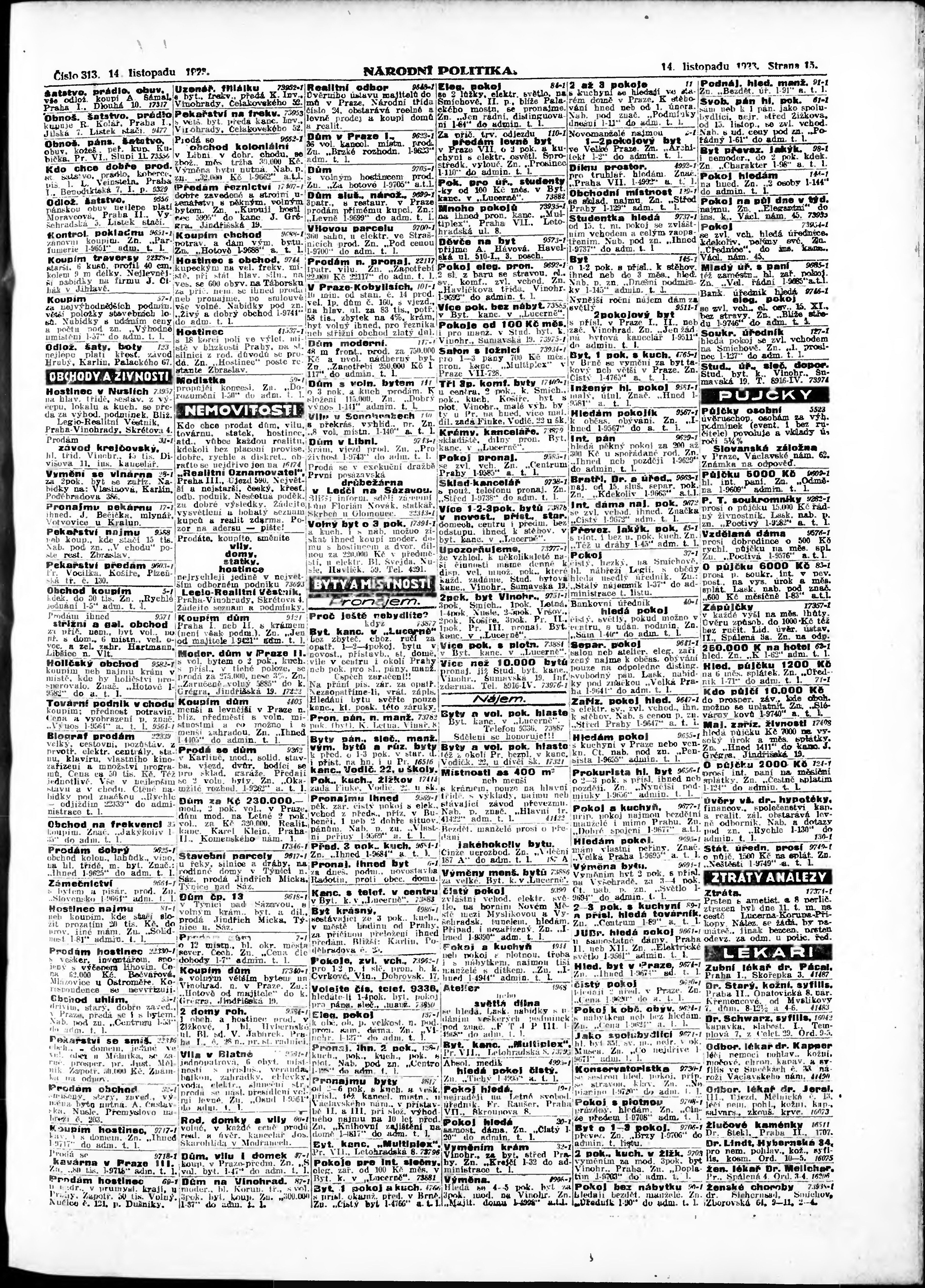 * Datum vydání výtisku: 14.11.1923 Číslo výtisku: 313 Poznámky k výtisku: ranní vydání; vydání pro Prahu;