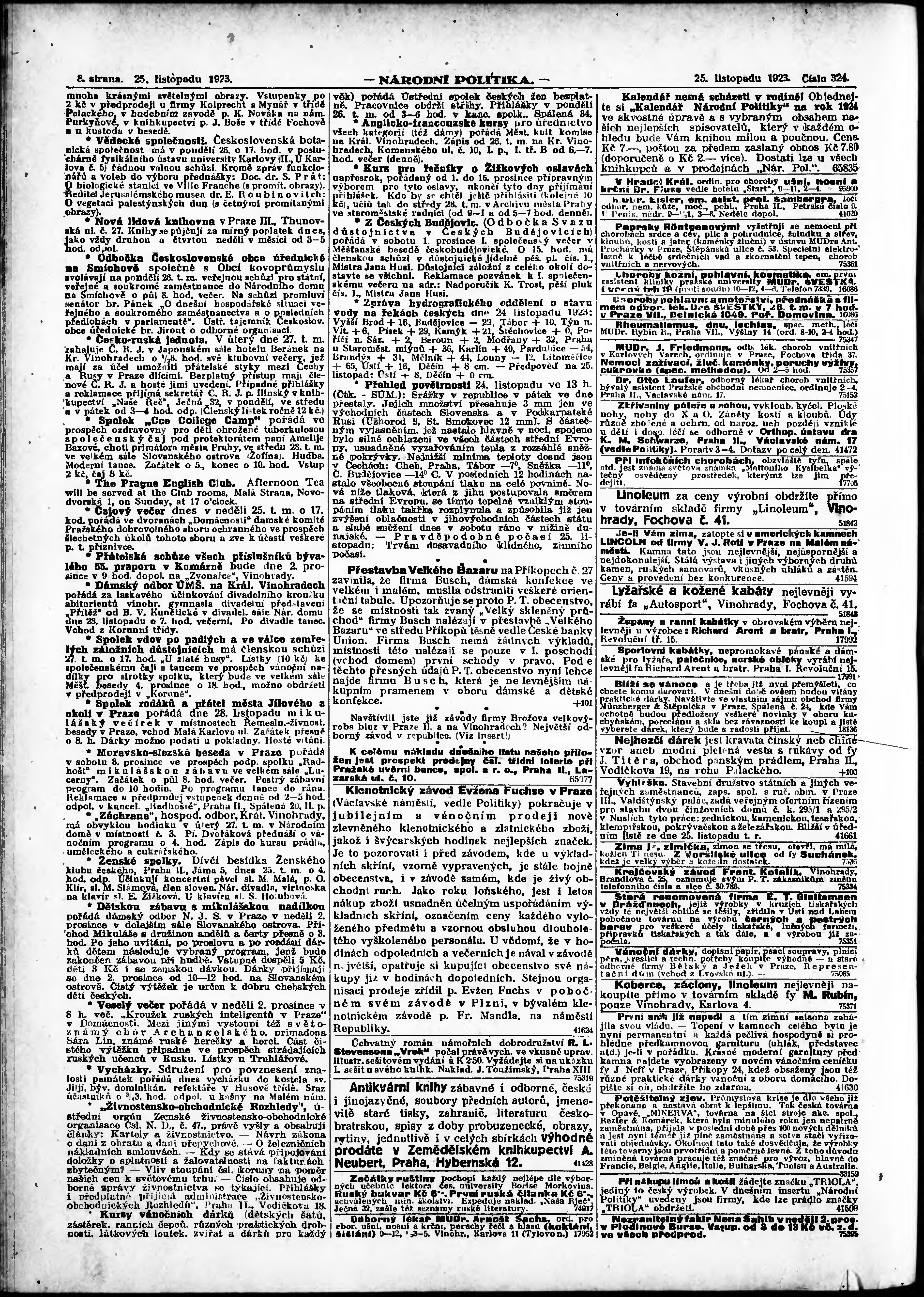 * Datum vydání výtisku: 25.11.1923 Číslo výtisku: 324 Poznámky k výtisku: ranní vydání;