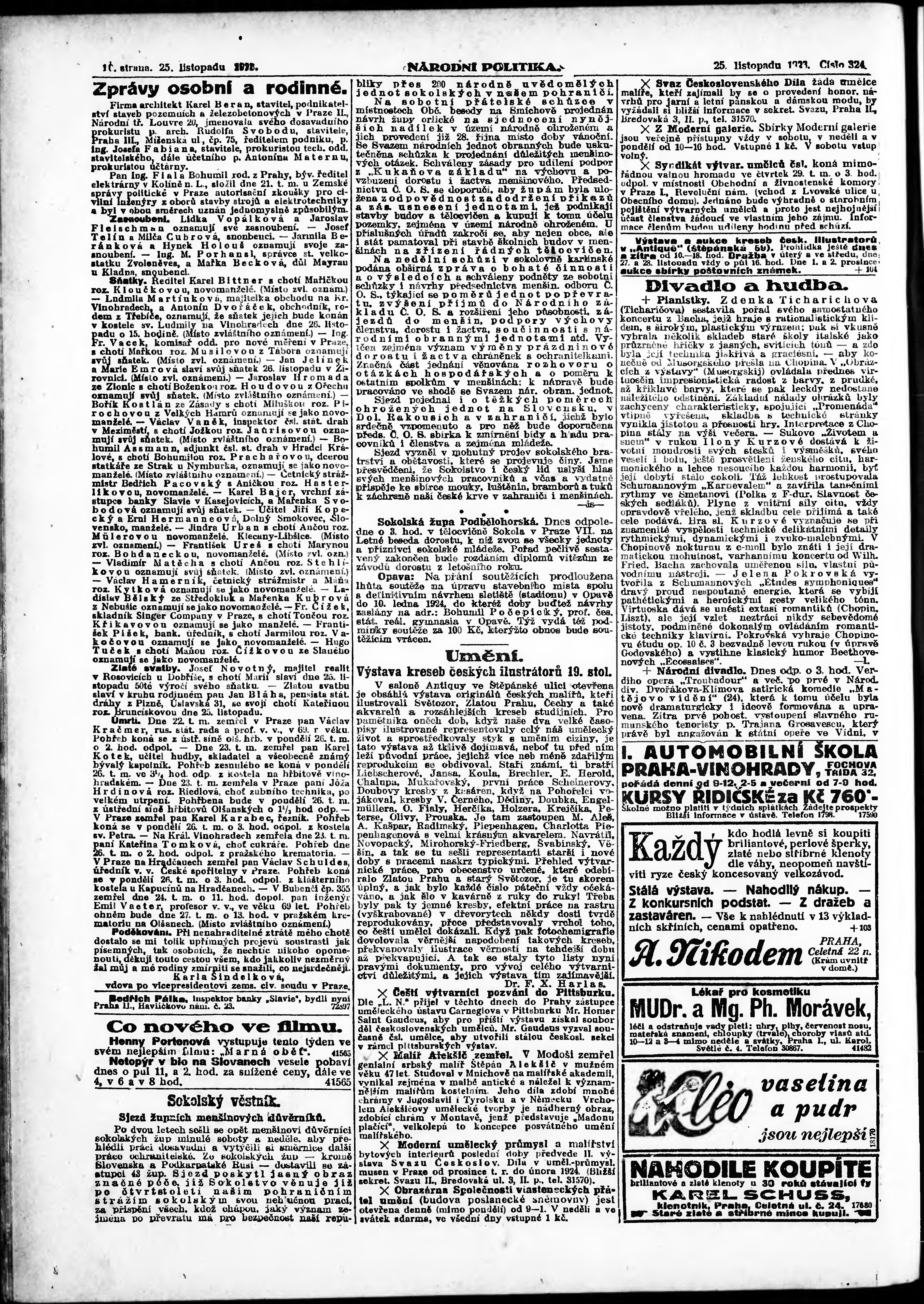 * Datum vydání výtisku: 25.11.1923 Číslo výtisku: 324 Poznámky k výtisku: ranní vydání;