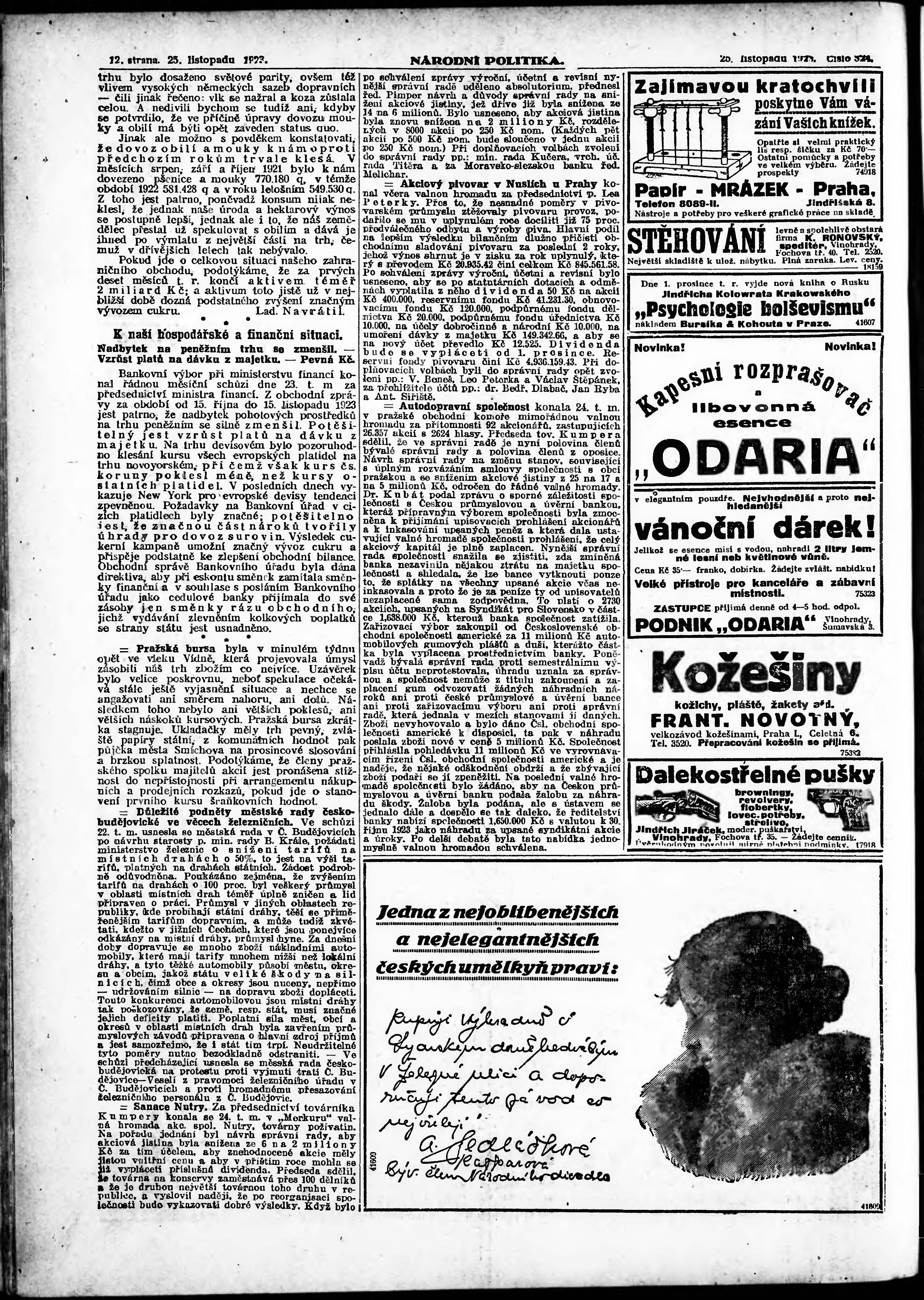 * Datum vydání výtisku: 25.11.1923 Číslo výtisku: 324 Poznámky k výtisku: ranní vydání;