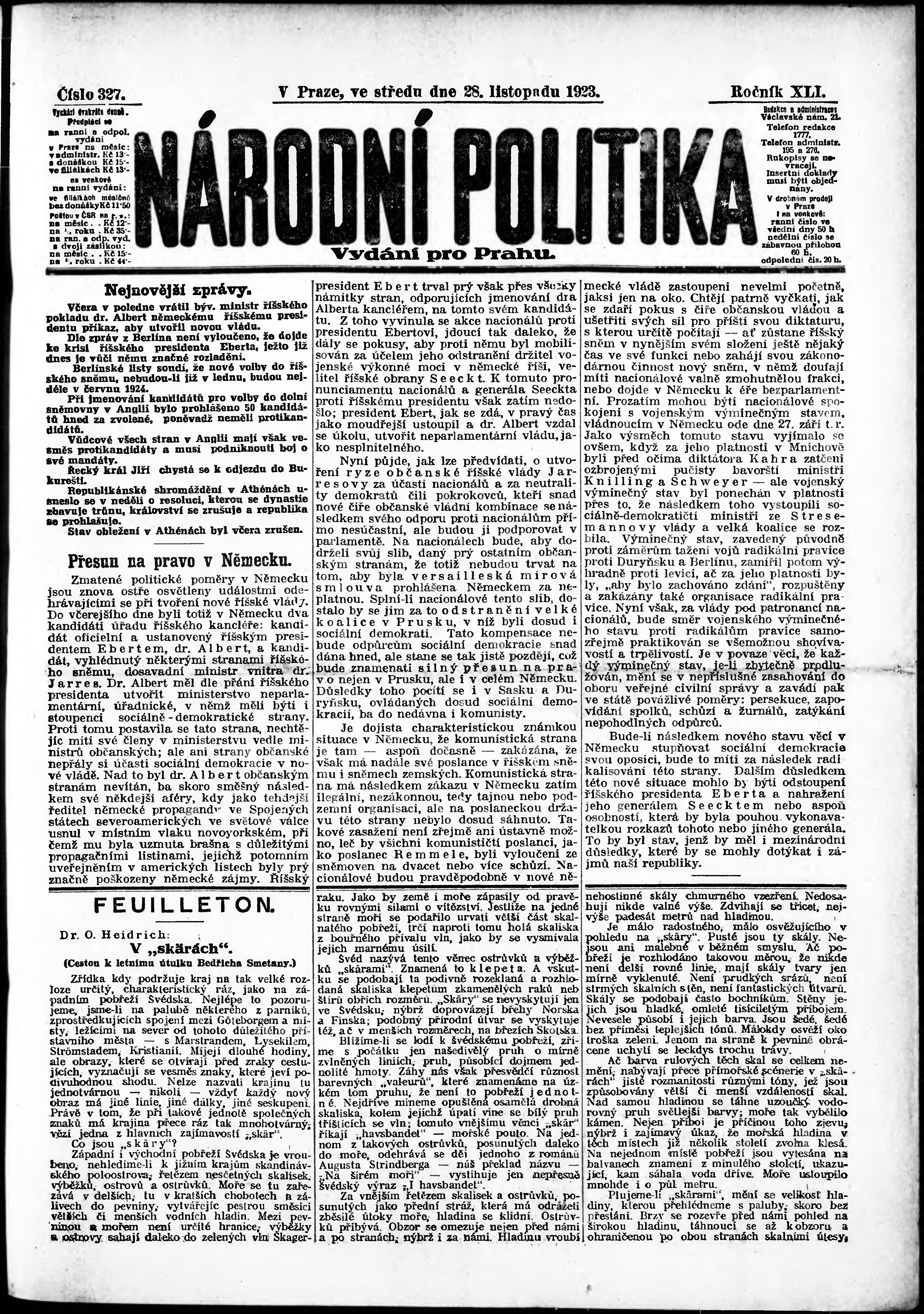 ranní vydání; vydání pro Prahu;