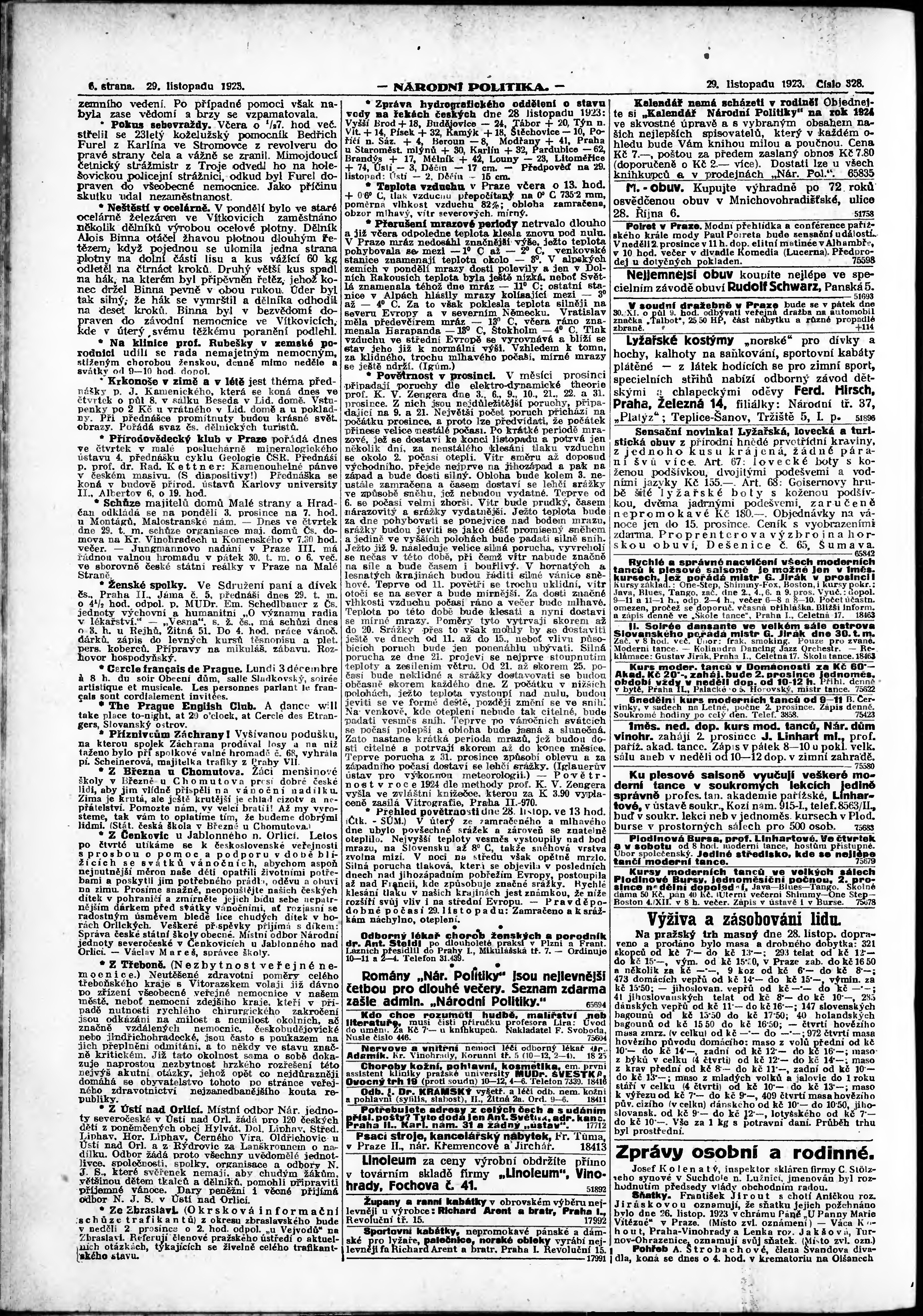 * Datum vydání výtisku: 29.11.1923 Číslo výtisku: 328 Poznámky k výtisku: ranní vydání; vydání pro Prahu;
