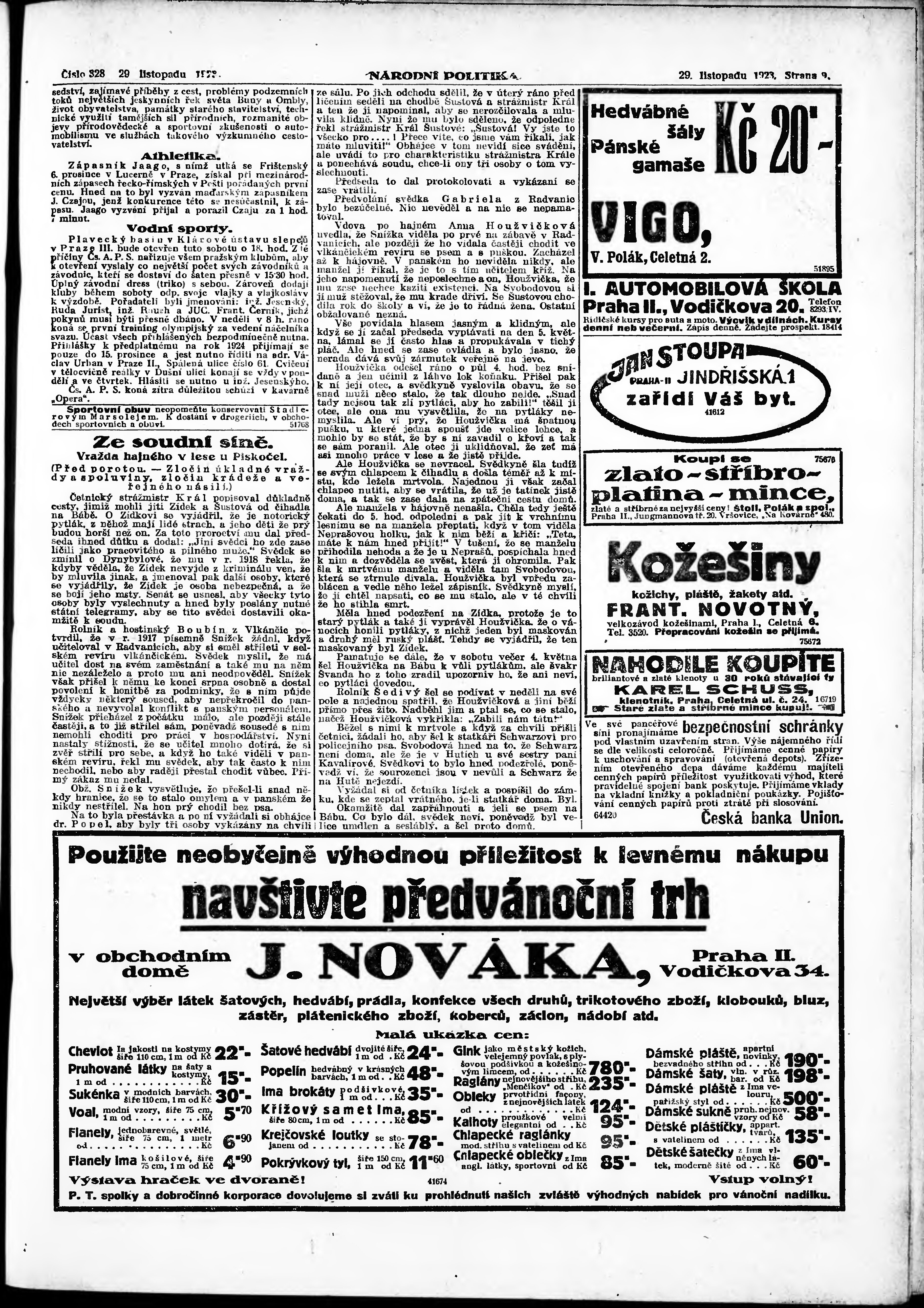 * Datum vydání výtisku: 29.11.1923 Číslo výtisku: 328 Poznámky k výtisku: ranní vydání; vydání pro Prahu;