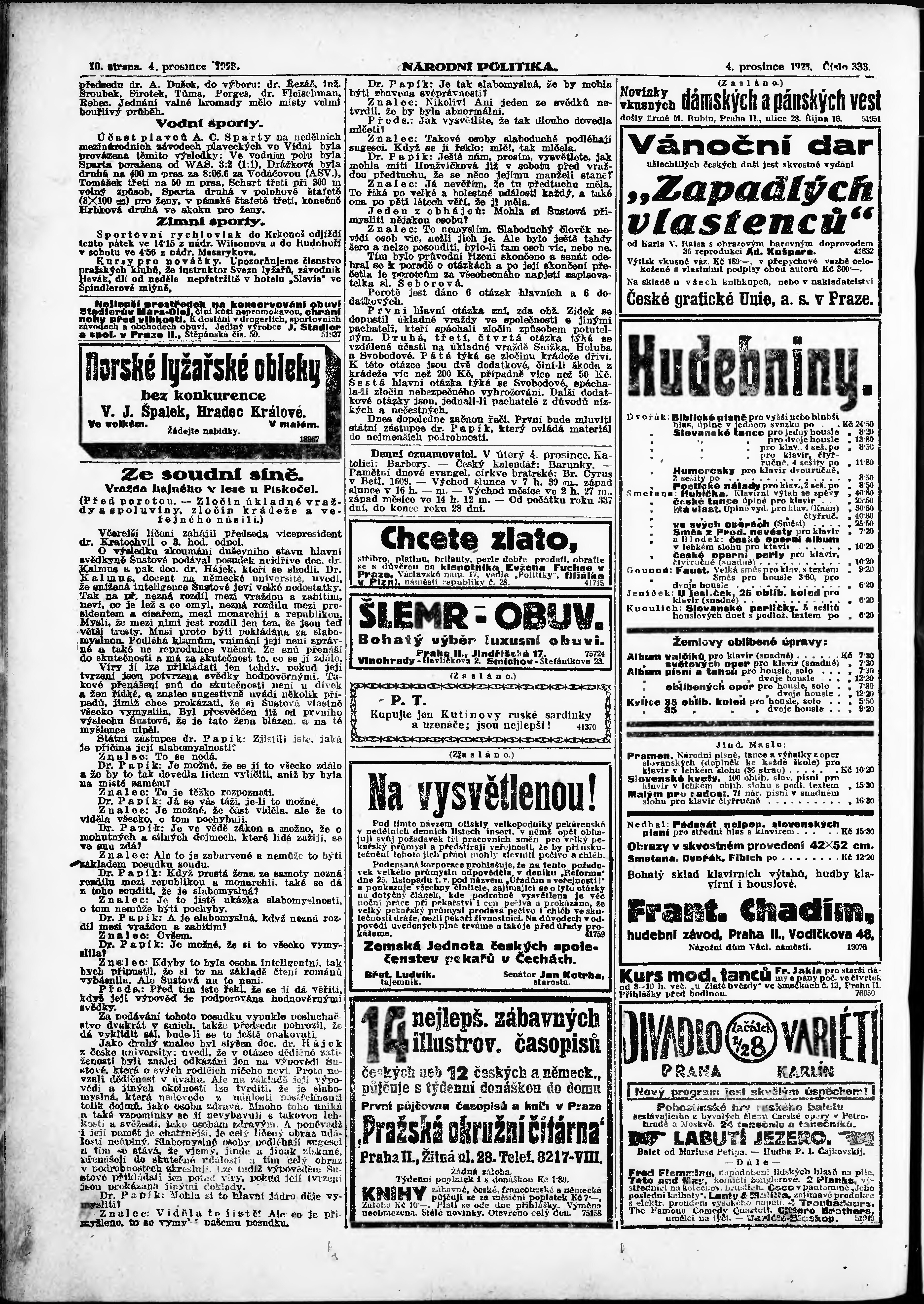 * Datum vydání výtisku: 4.12.1923 Číslo výtisku: 333 Poznámky k výtisku: ranní vydání; vydání pro Prahu;