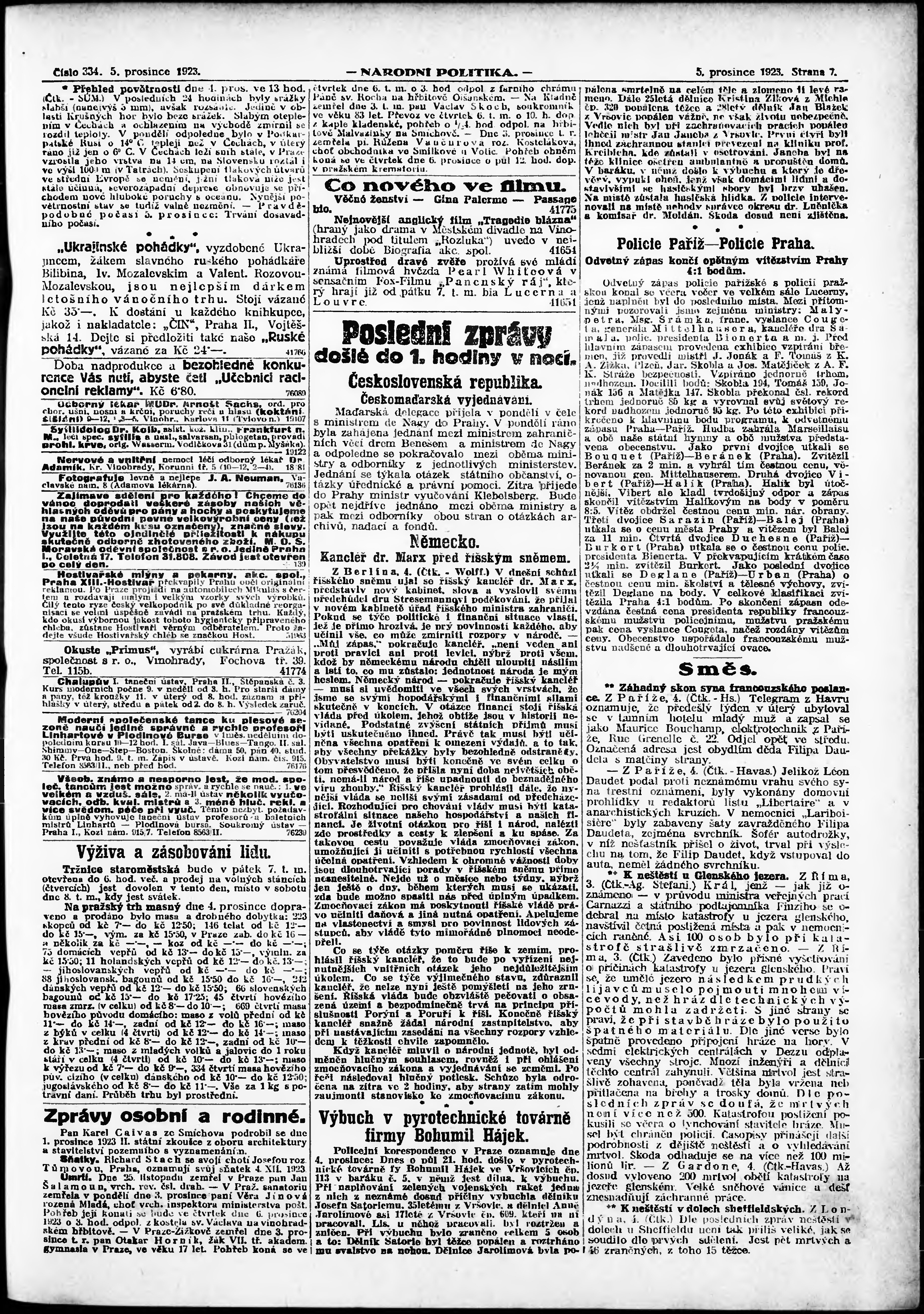 * Datum vydání výtisku: 5.12.1923 Číslo výtisku: 334 Poznámky k výtisku: ranní vydání; vydání pro Prahu;