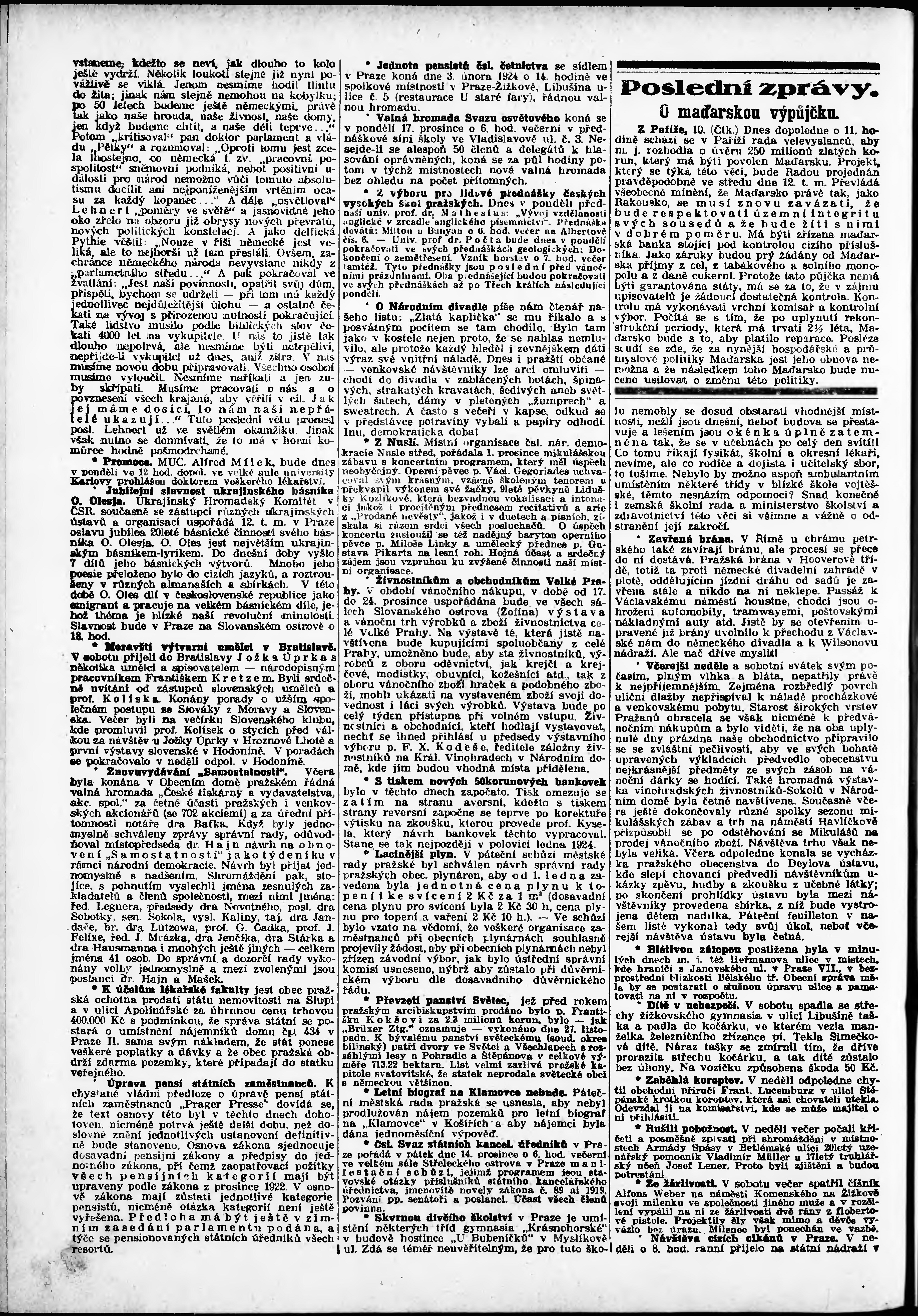 * Datum vydání výtisku: 10.12.1923 Číslo výtisku: 338 Poznámky k výtisku: odpolední vydání;