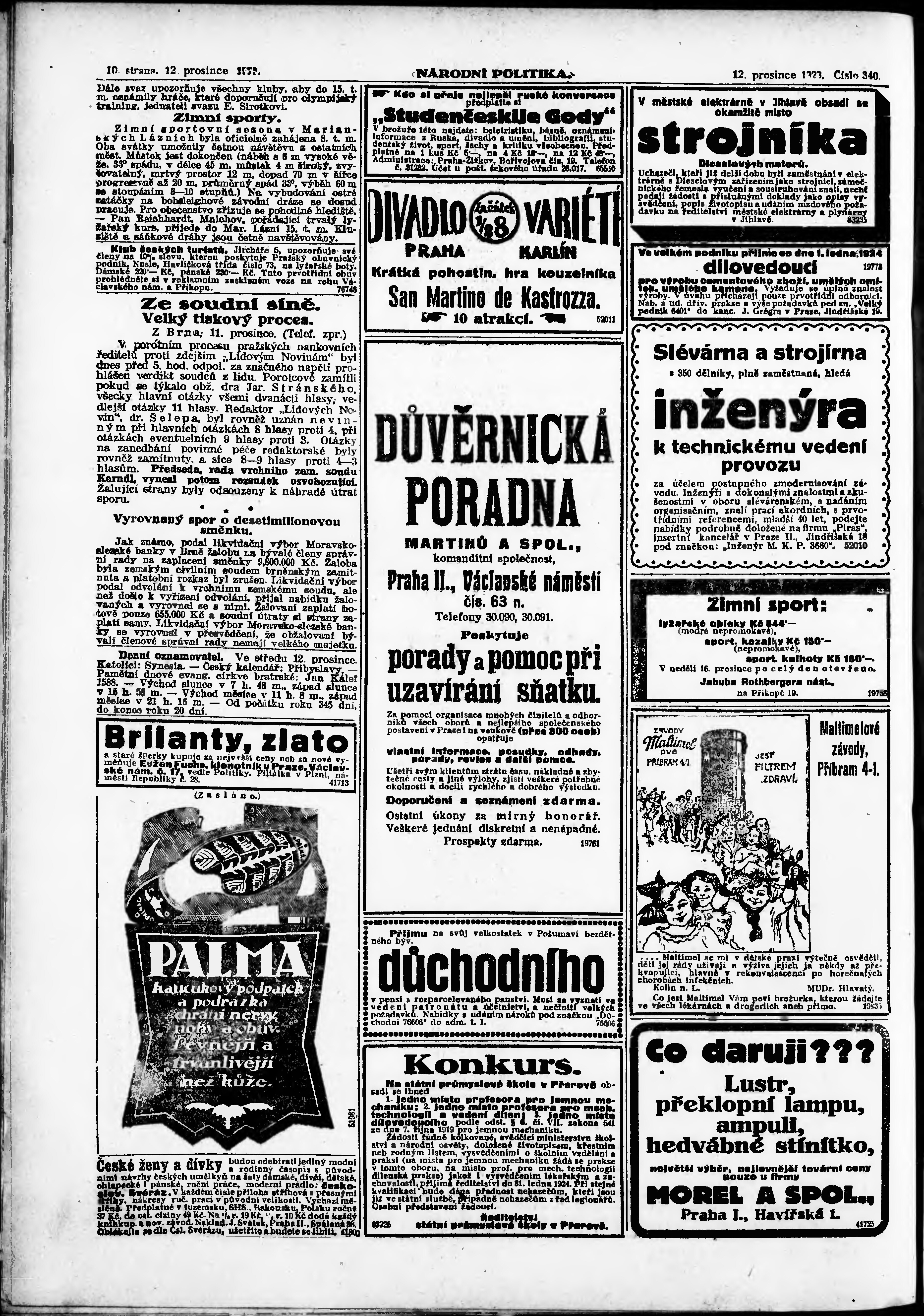 * Datum vydání výtisku: 12.12.1923 Číslo výtisku: 340 Poznámky k výtisku: ranní vydání; vydání pro Prahu;
