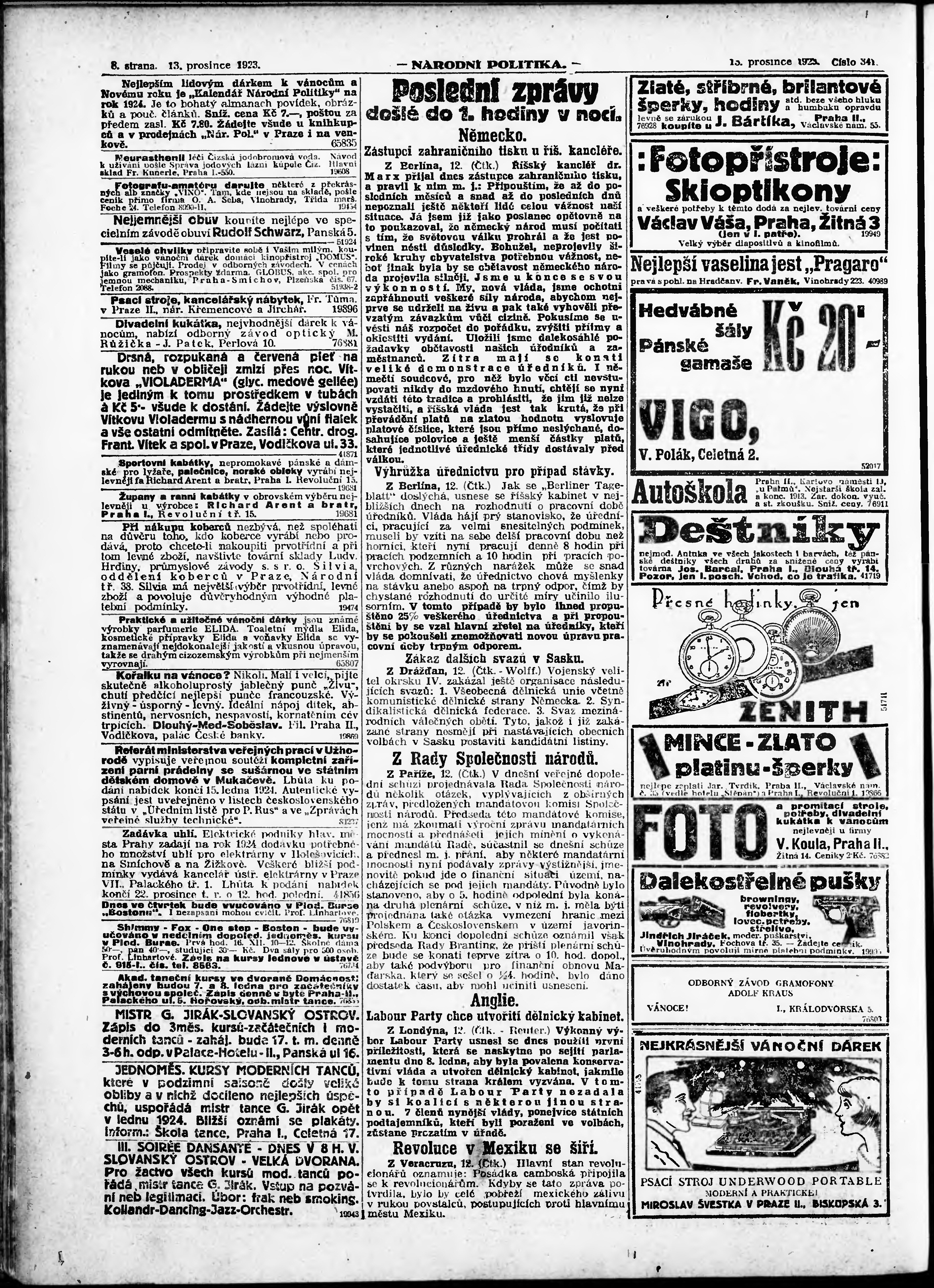 * Datum vydání výtisku: 13.12.1923 Číslo výtisku: 341 Poznámky k výtisku: ranní vydání; vydání pro Prahu;