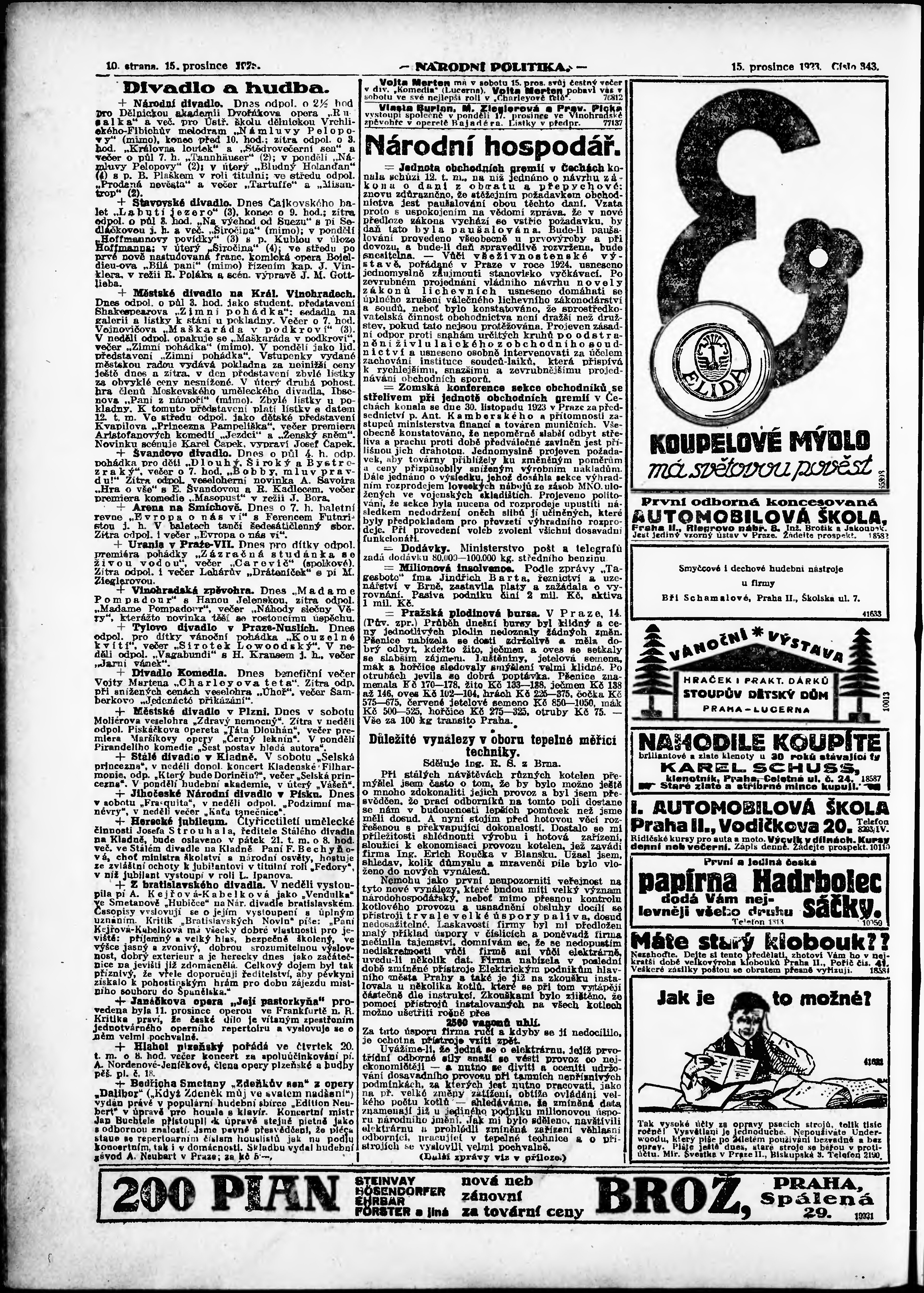 * Datum vydání výtisku: 15.12.1923 Číslo výtisku: 343 Poznámky k výtisku: ranní vydání; vydání pro Prahu;