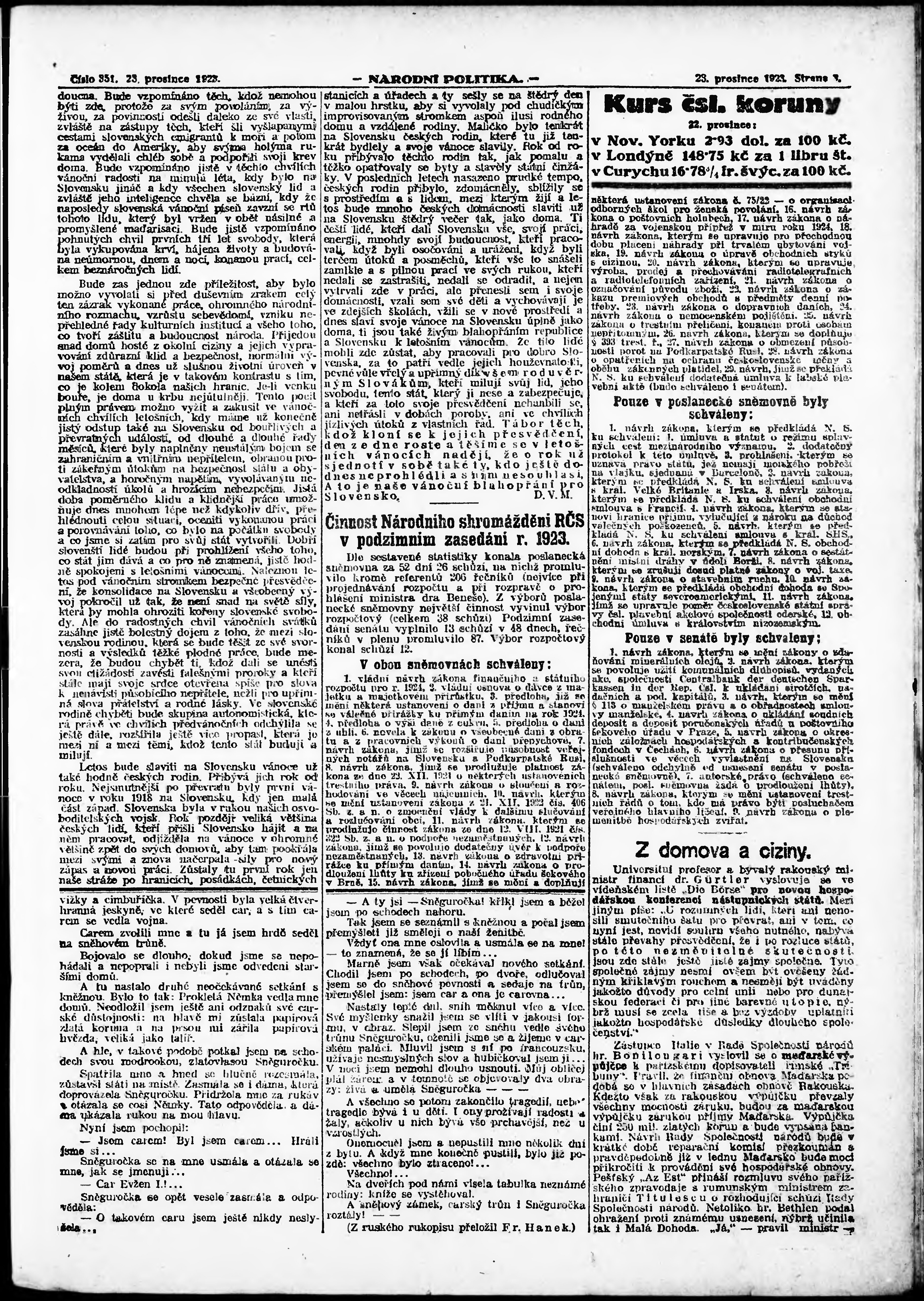 * Datum vydání výtisku: 23.12.1923 Číslo výtisku: 351 Poznámky k výtisku: ranní vydání;