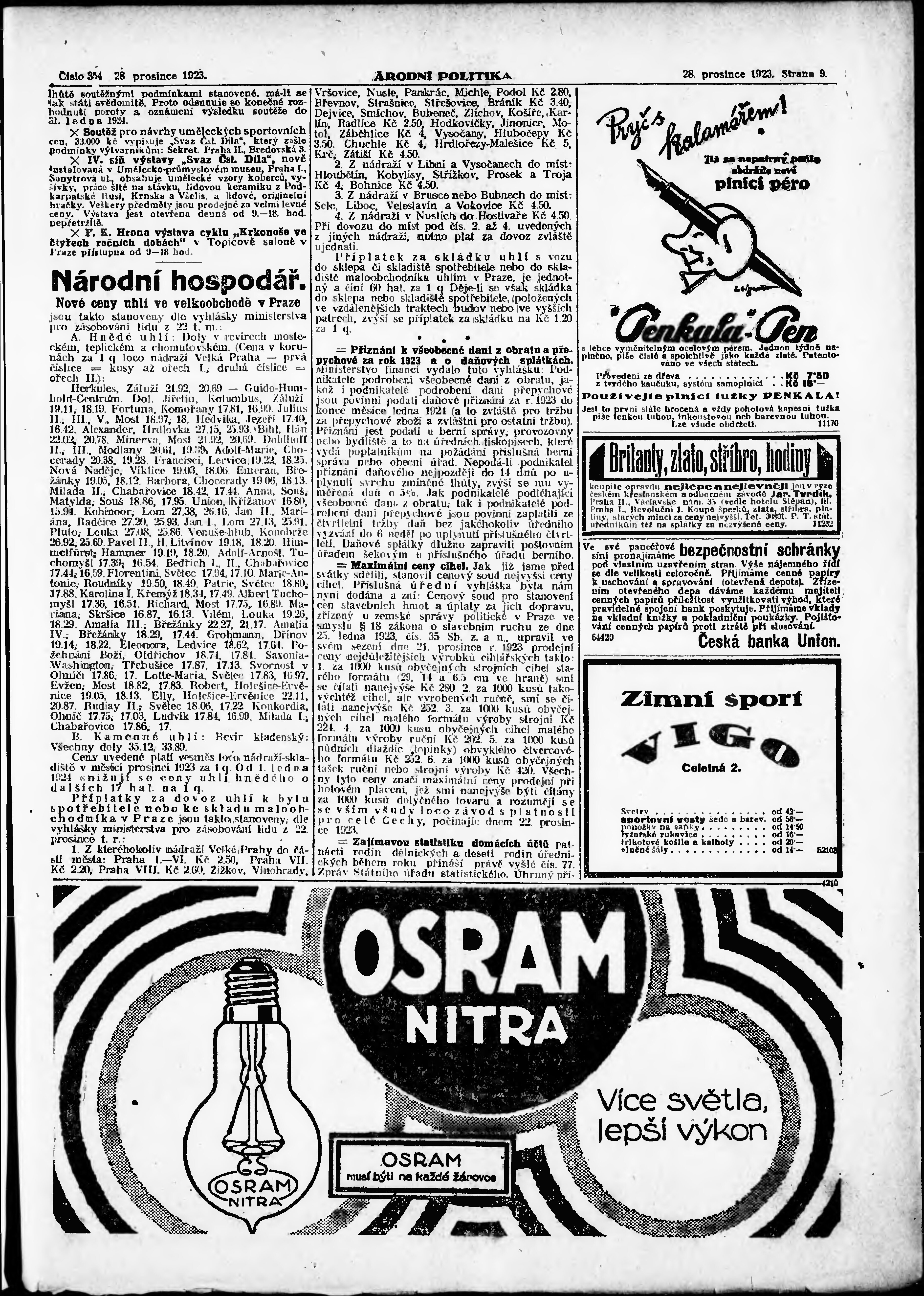 * Datum vydání výtisku: 28.12.1923 Číslo výtisku: 354 Poznámky k výtisku: ranní vydání; vydání pro Prahu;