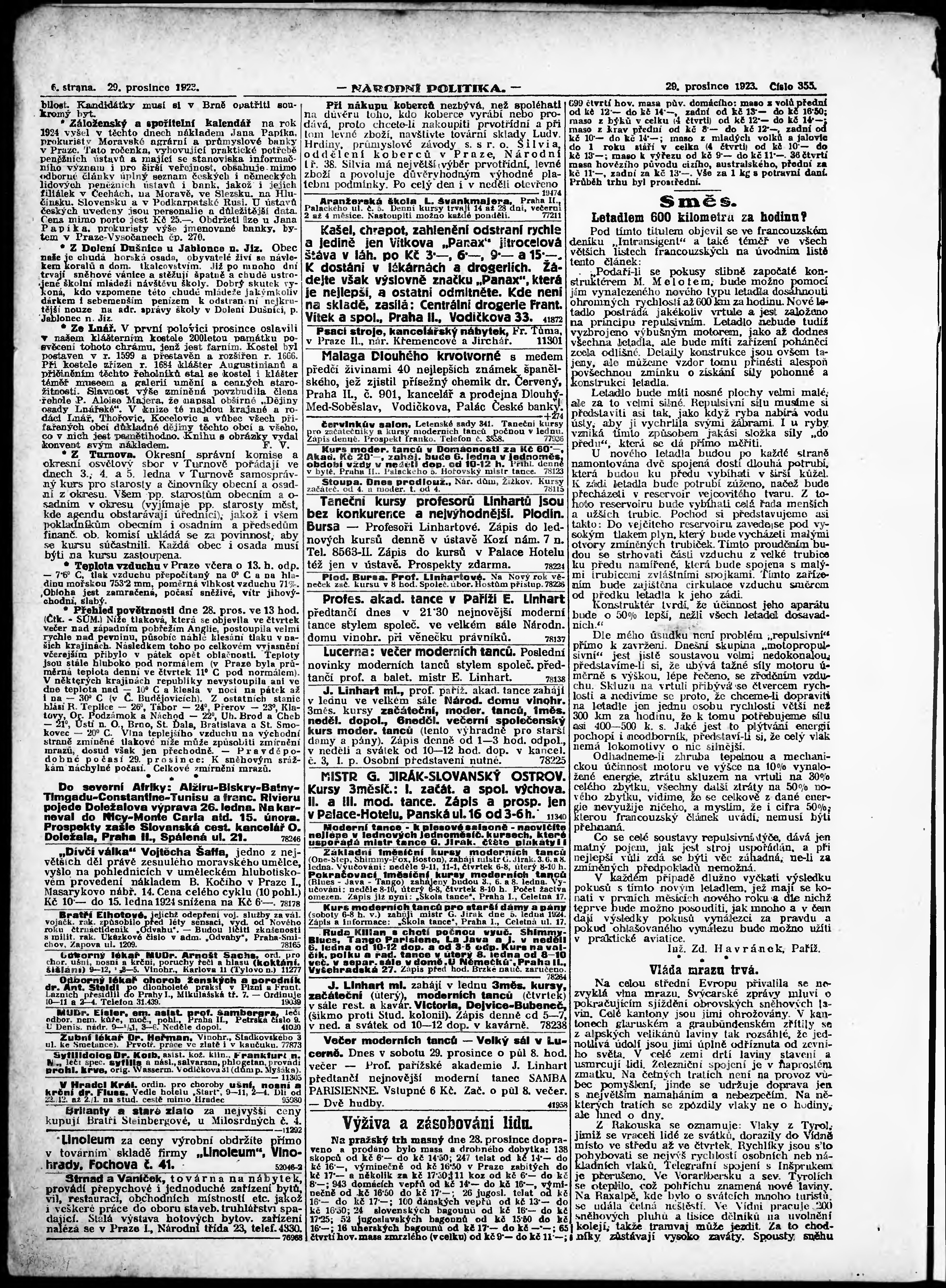 * Datum vydání výtisku: 29.12.1923 Číslo výtisku: 355 Poznámky k výtisku: ranní vydání; vydání pro Prahu;