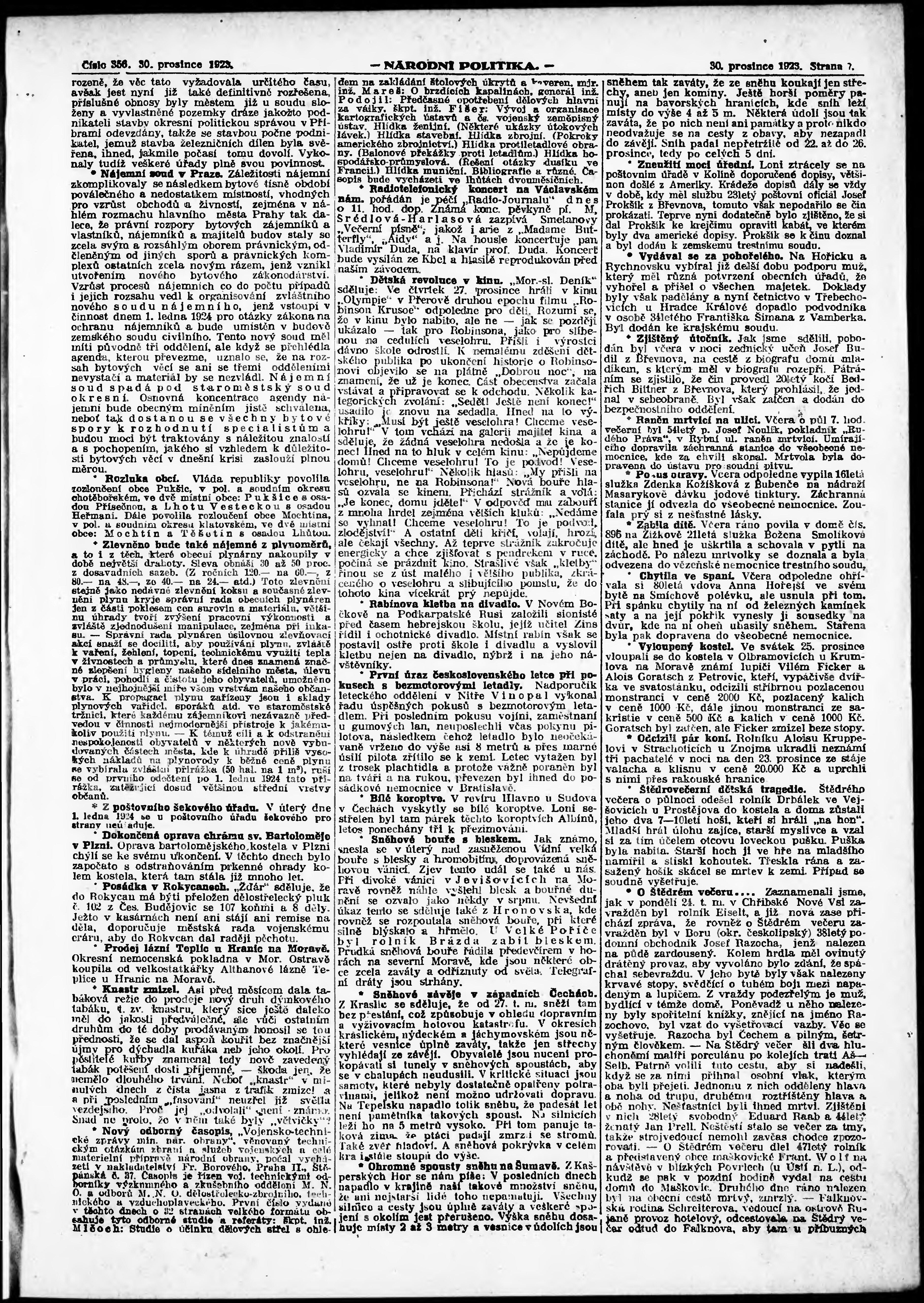 * Datum vydání výtisku: 30.12.1923 Číslo výtisku: 356 Poznámky k výtisku: ranní vydání;