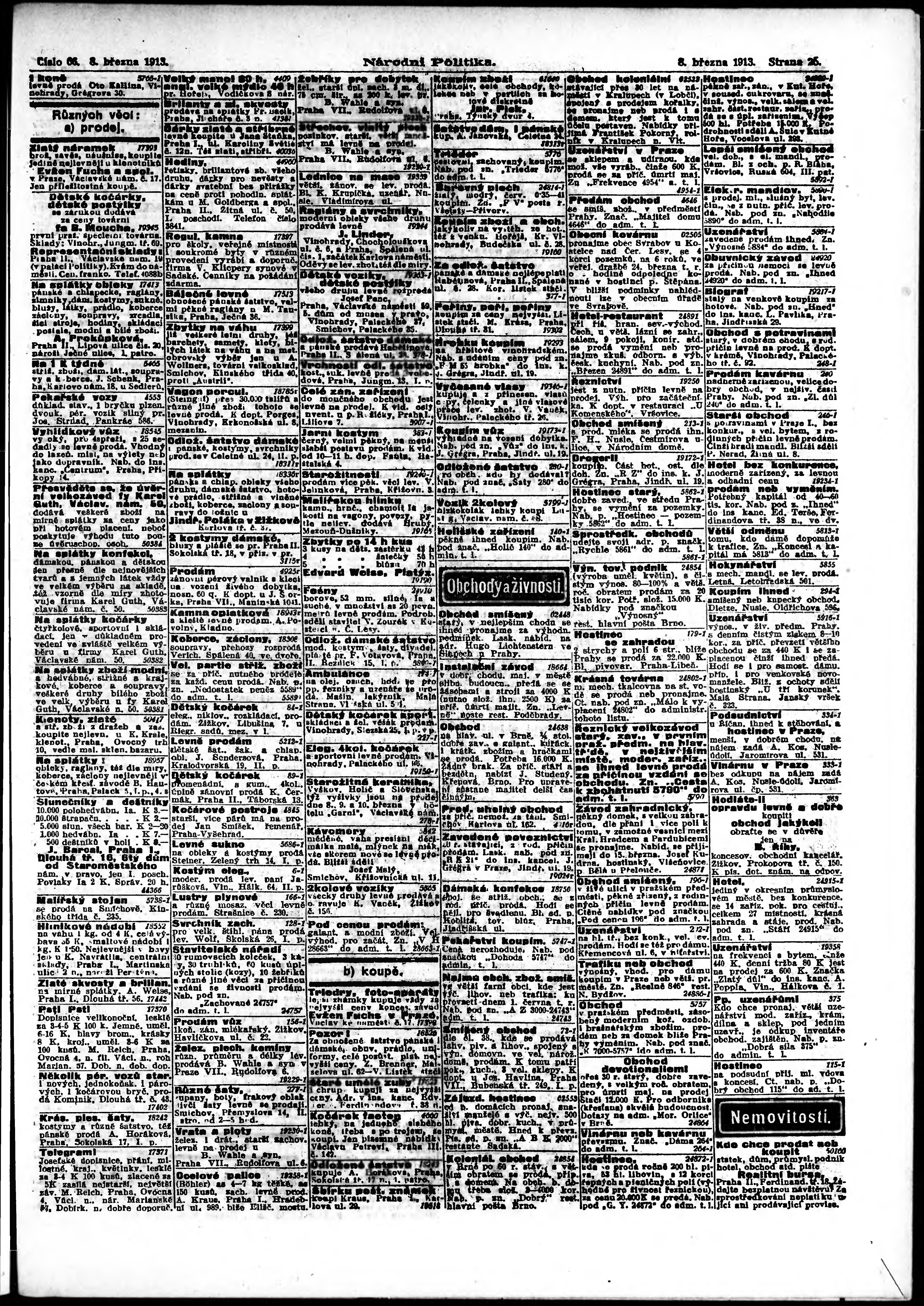 * Datum vydání výtisku: 8.3.1913 Číslo výtisku: 66 Poznámky k výtisku: ranní vydání;
