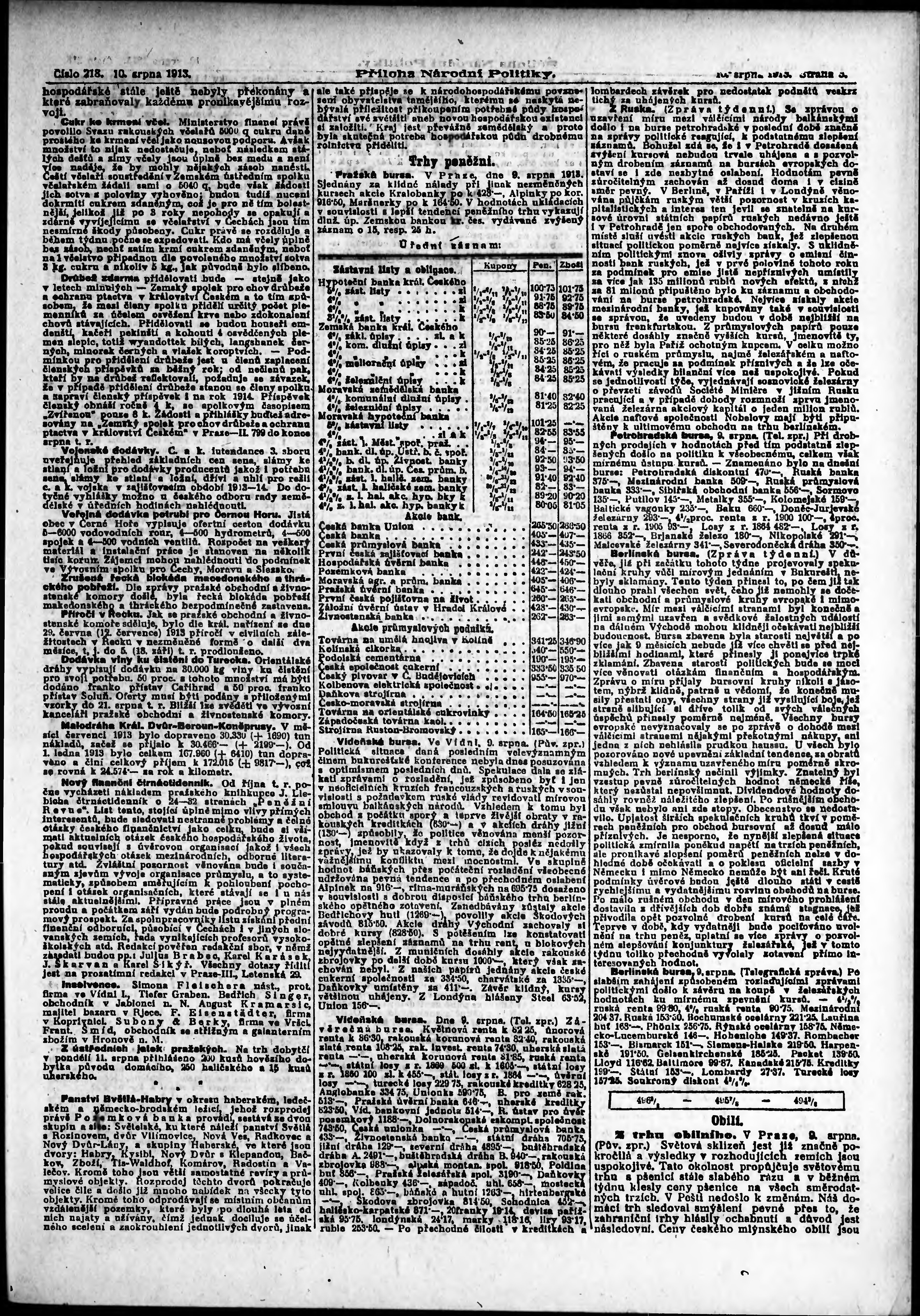 * Datum vydání výtisku: 10.8.1913 Číslo výtisku: 218 Typ výtisku: příloha