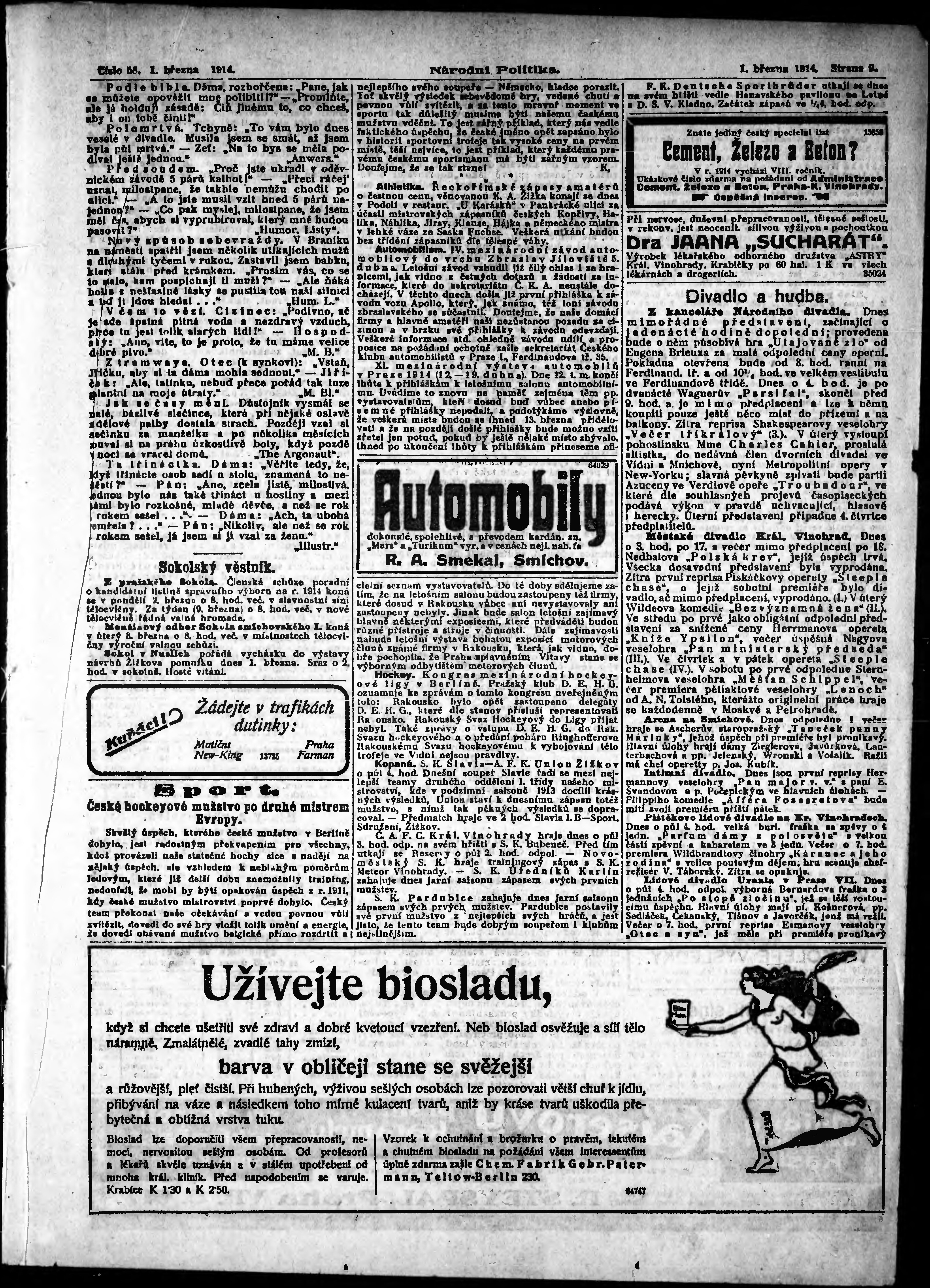 * Datum vydání výtisku: 1.3.1914 Číslo výtisku: 58 Poznámky k výtisku: ranní vydání; s. 2, 5 není k dispozici;