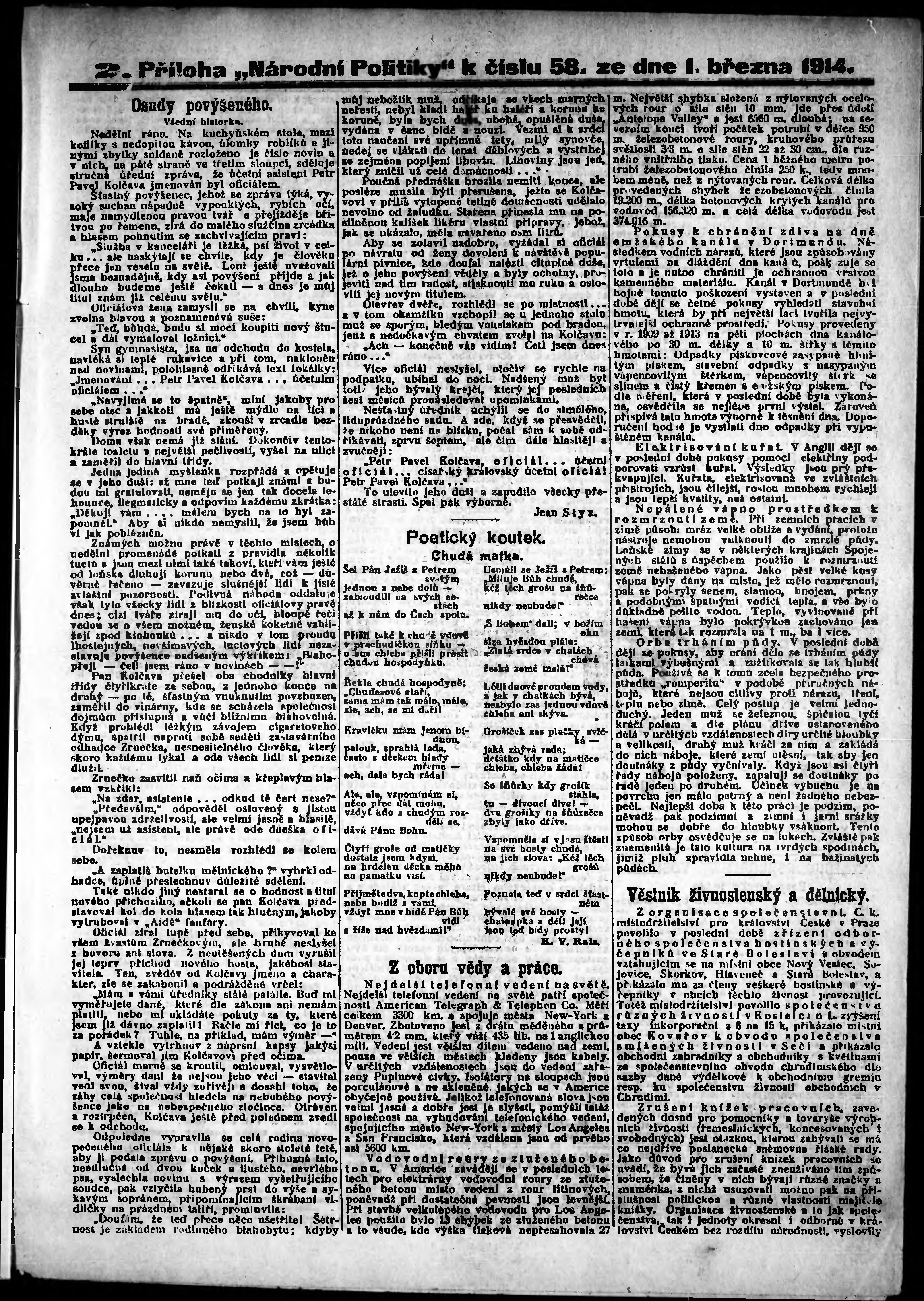 * Datum vydání výtisku: 1.3.1914 Číslo výtisku: 58 Typ výtisku: příloha Poznámky k výtisku: 2. příloha;