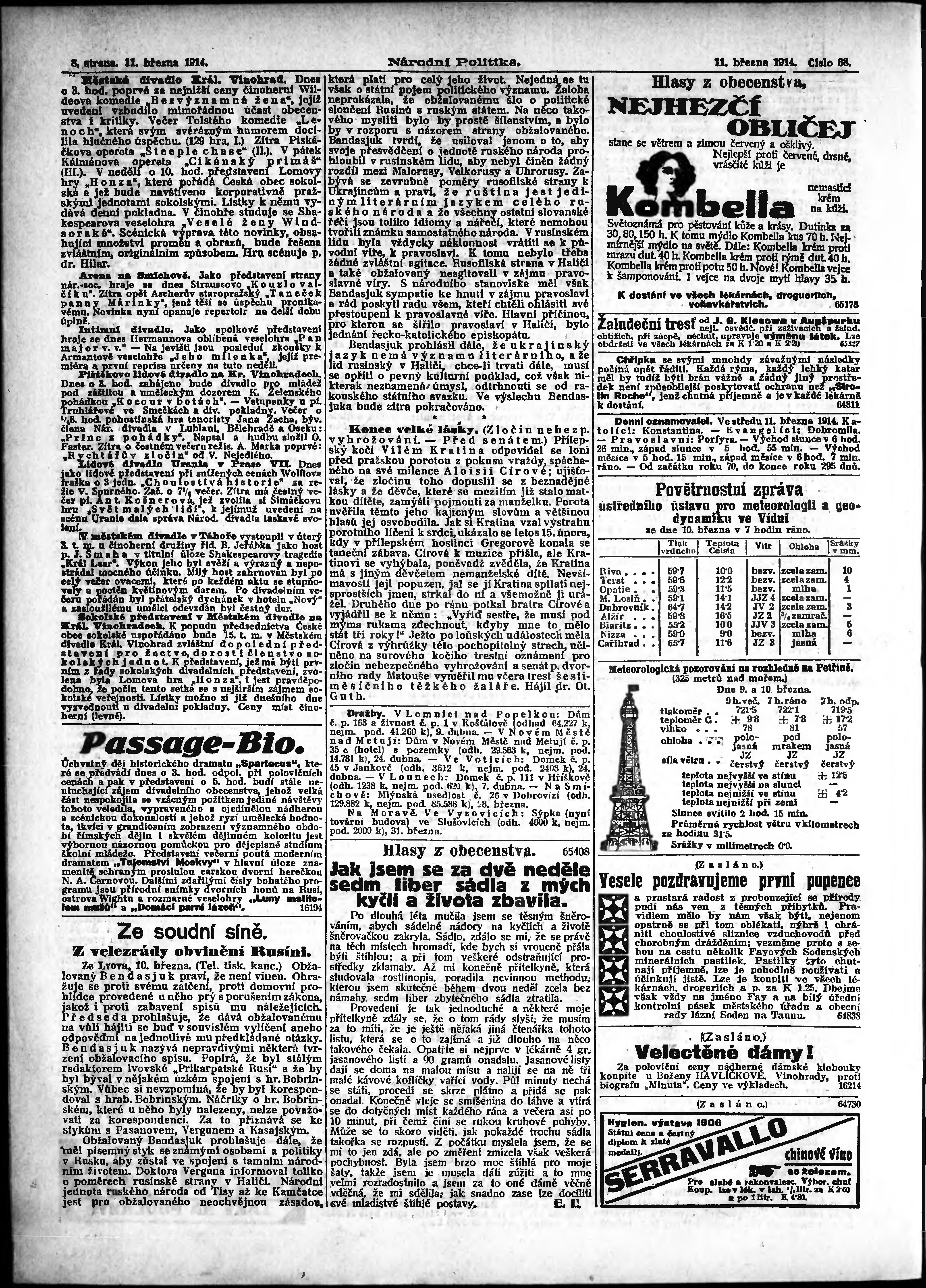 * Datum vydání výtisku: 11.3.1914 Číslo výtisku: 68 Poznámky k výtisku: ranní vydání; s. 9 - 10 není k dispozici;