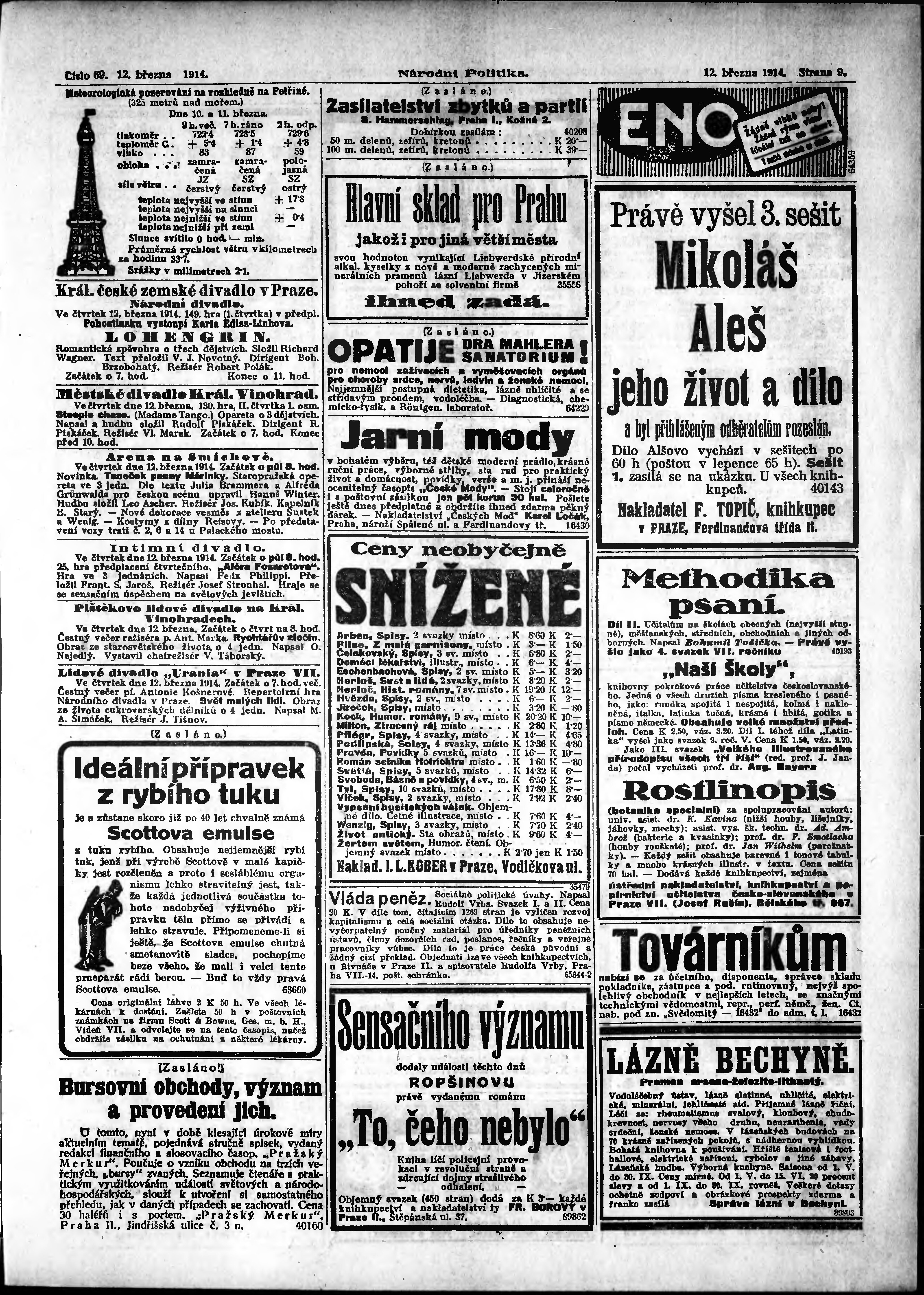 * Datum vydání výtisku: 12.3.1914 Číslo výtisku: 69 Poznámky k výtisku: ranní vydání;