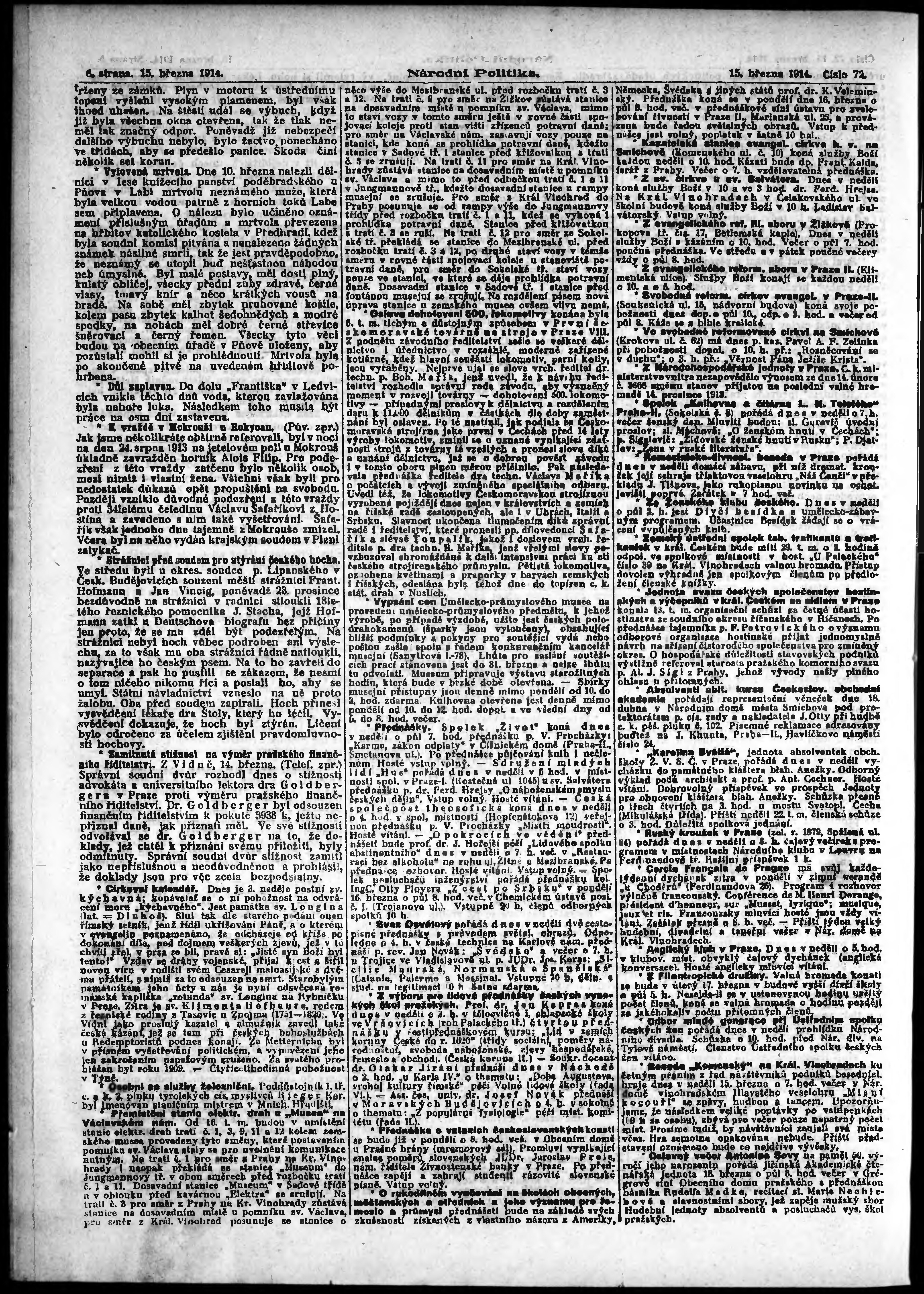 * Datum vydání výtisku: 15.3.1914 Číslo výtisku: 72 Poznámky k výtisku: ranní vydání;
