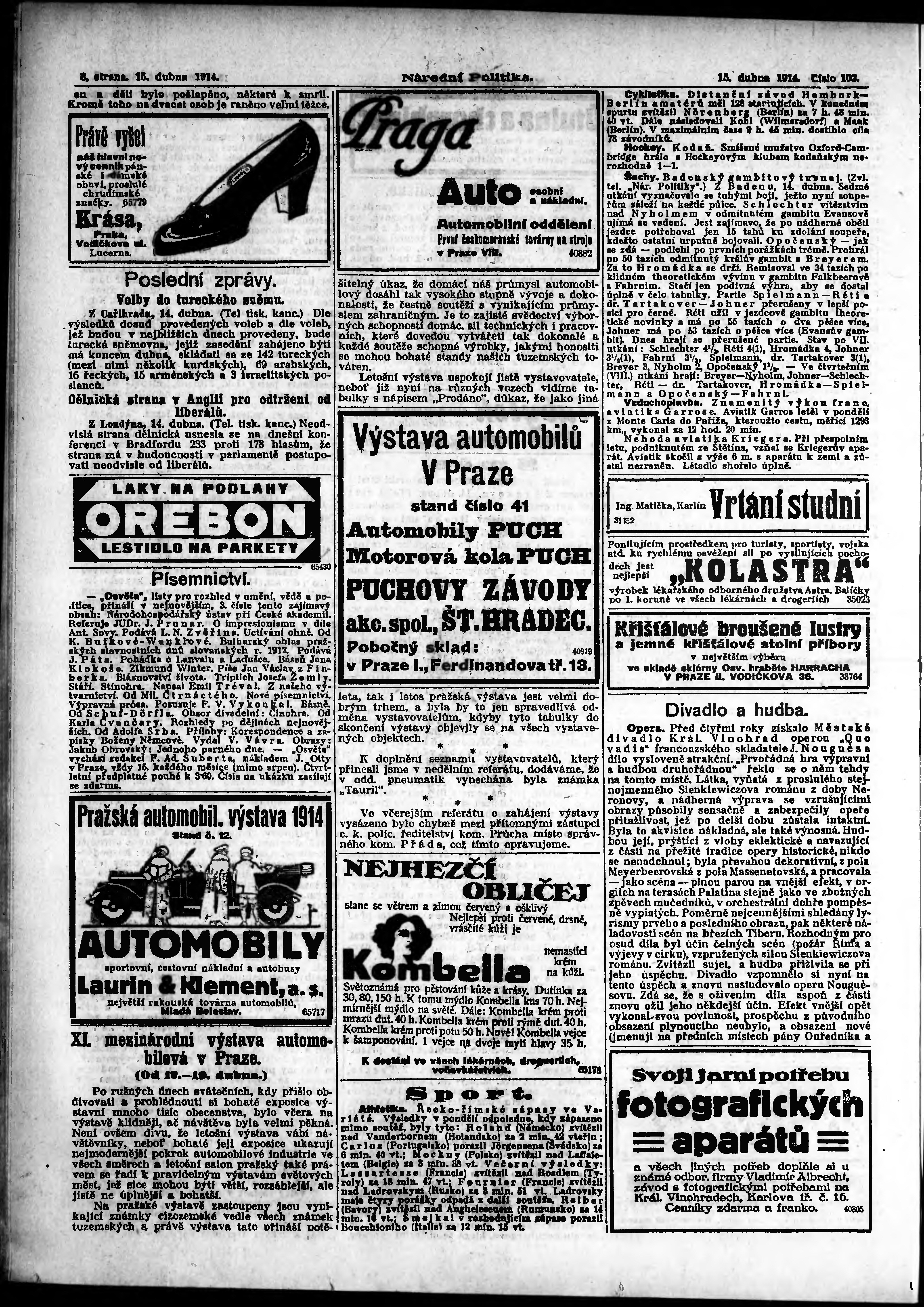 * Datum vydání výtisku: 15.4.1914 Číslo výtisku: 102 Poznámky k výtisku: ranní vydání;
