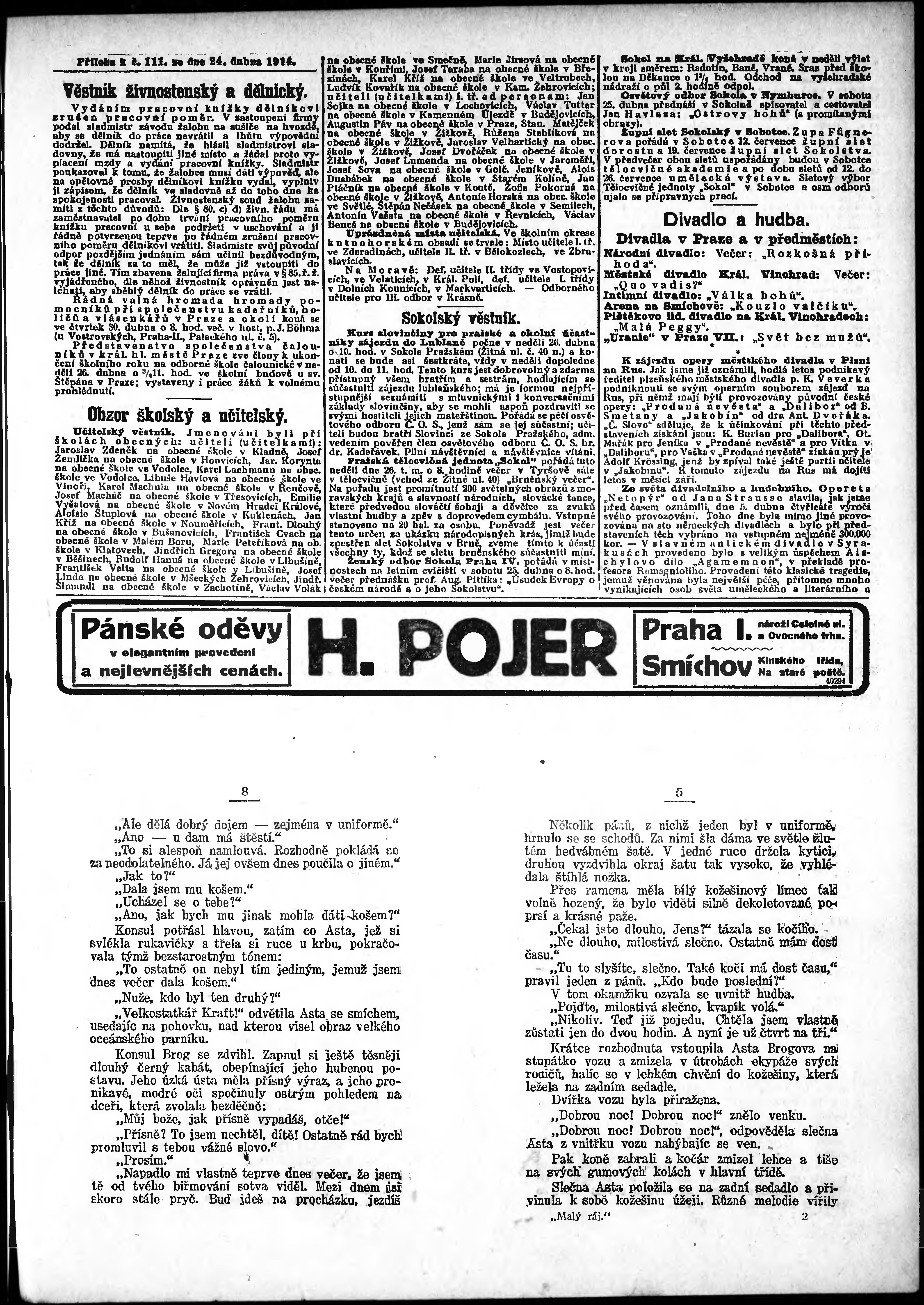 * Datum vydání výtisku: 24.4.1914 Číslo výtisku: 111 Typ výtisku: příloha