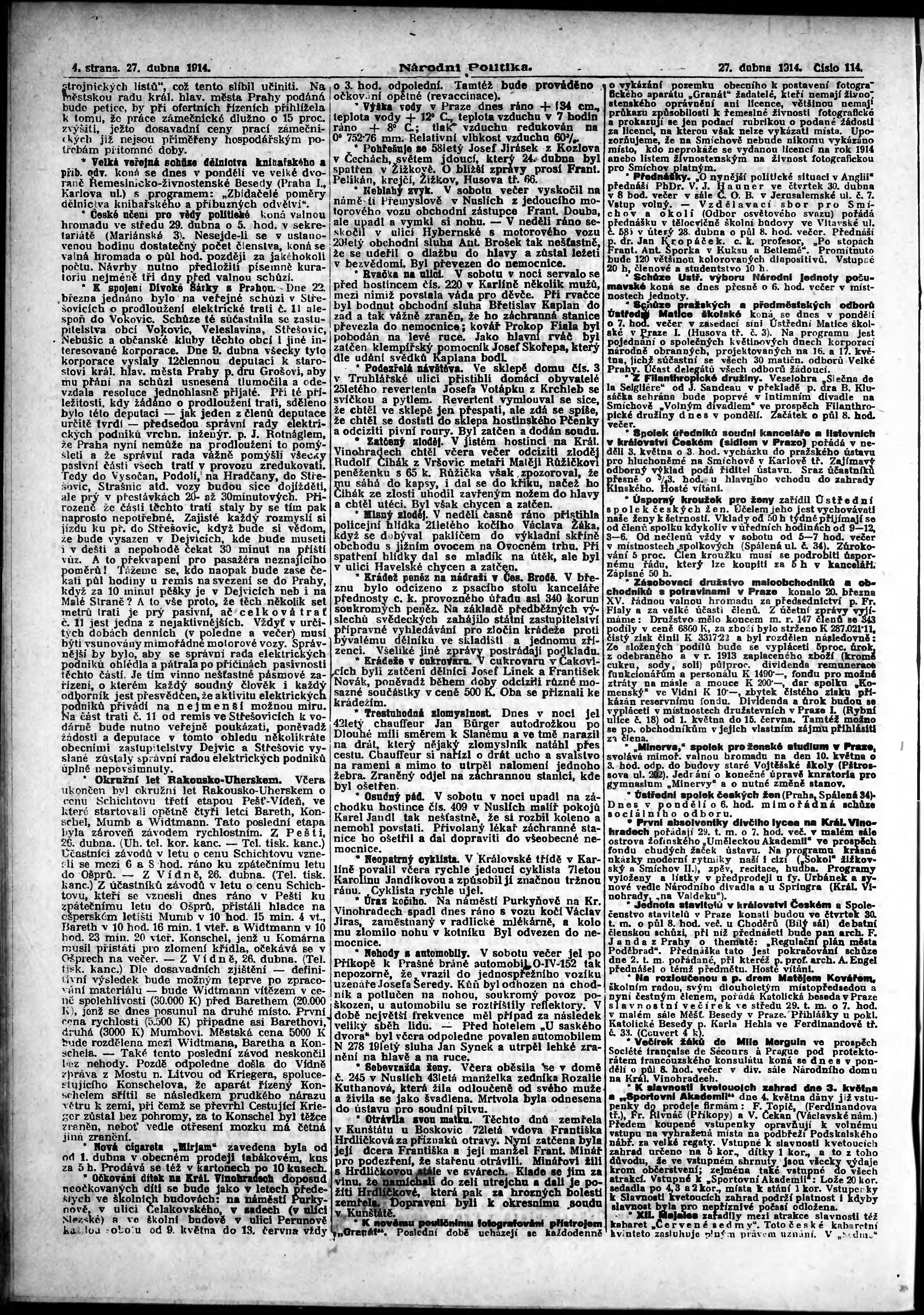 * Datum vydání výtisku: 27.4.1914 Číslo výtisku: 114 Poznámky k výtisku: ranní vydání;