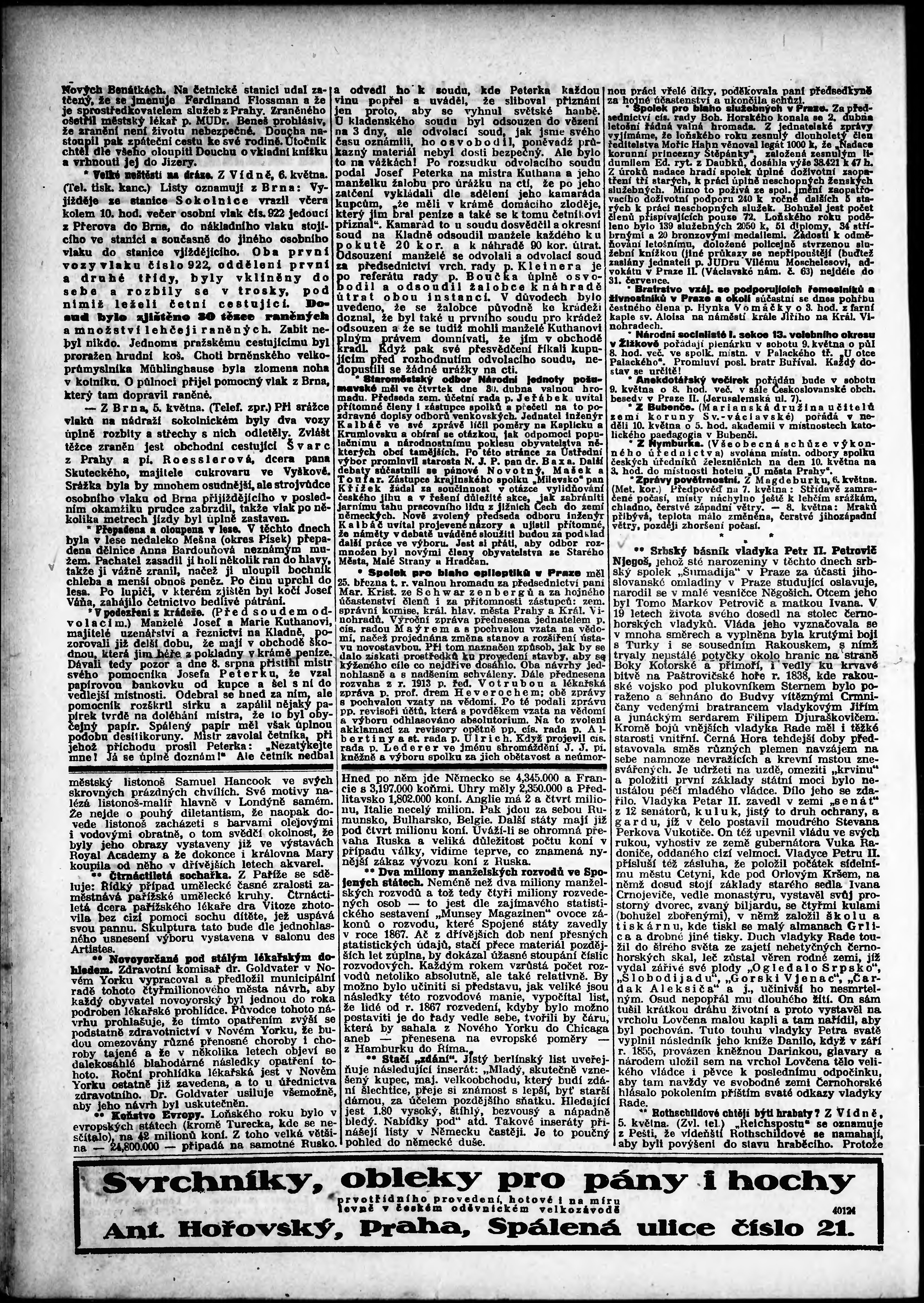 * Datum vydání výtisku: 6.5.1914 Číslo výtisku: 123 Poznámky k výtisku: odpolední vydání; s. [3] - [4] není k dispozici;