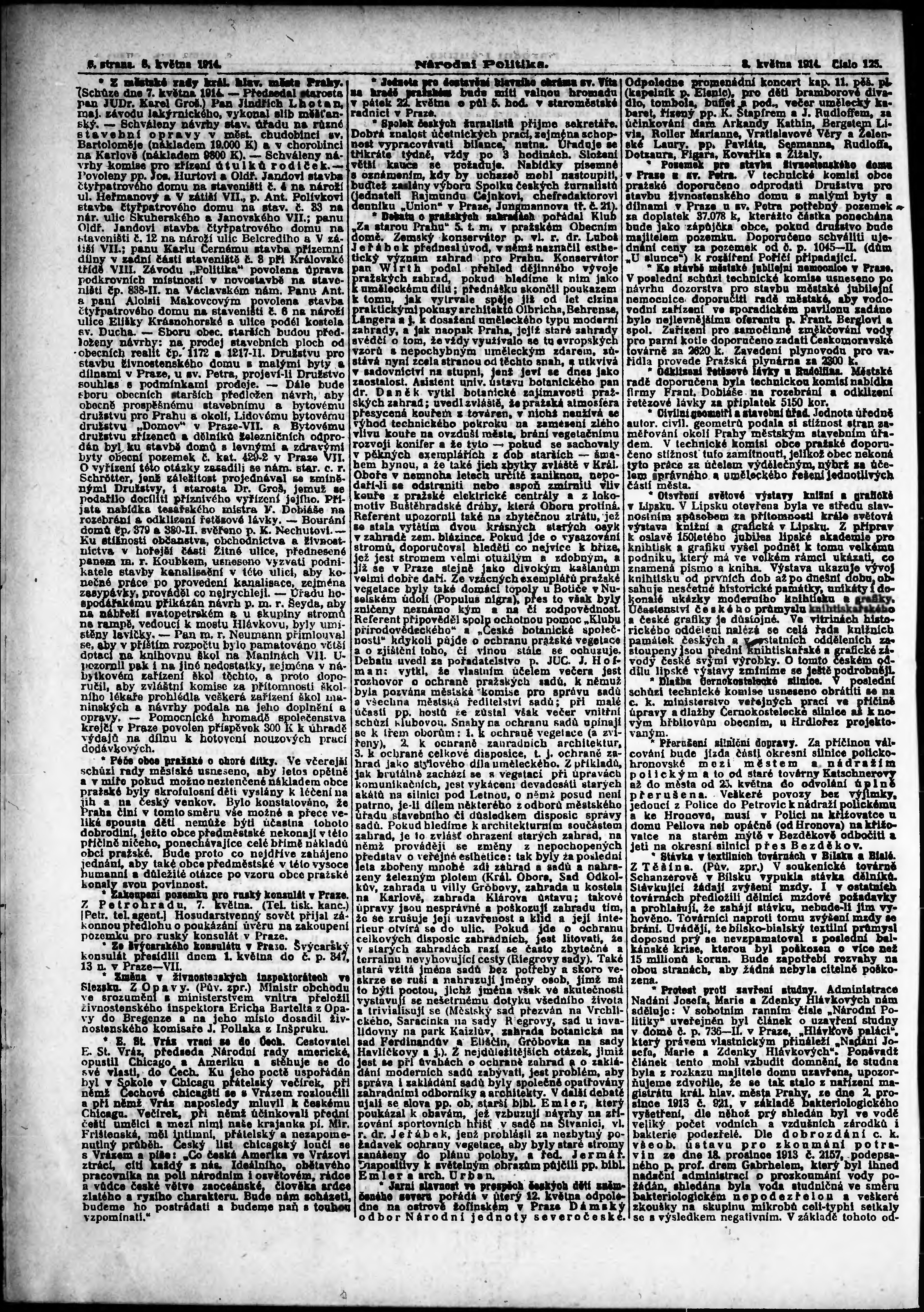 * Datum vydání výtisku: 8.5.1914 Číslo výtisku: 125 Poznámky k výtisku: ranní vydání;