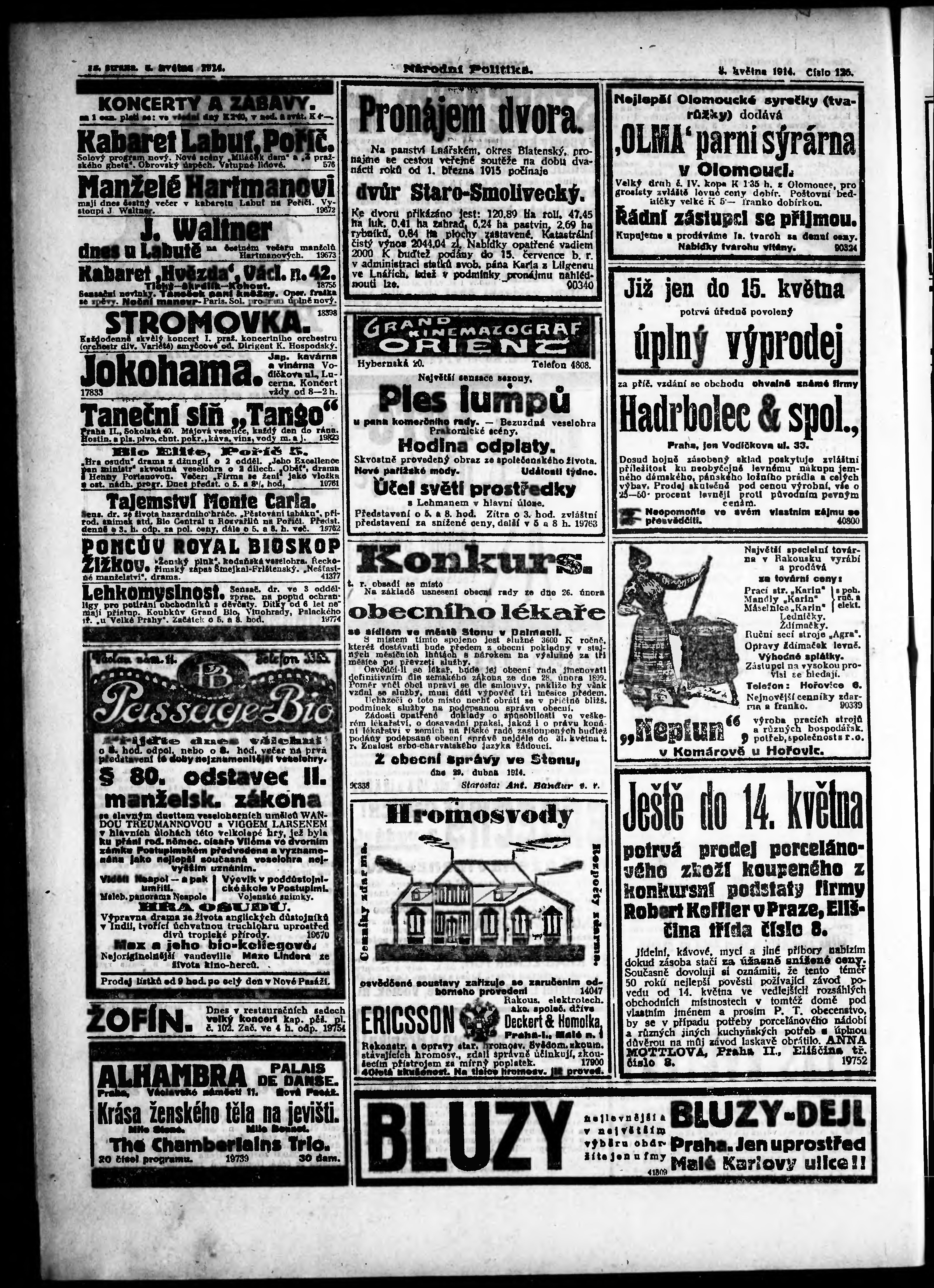 * Datum vydání výtisku: 8.5.1914 Číslo výtisku: 125 Poznámky k výtisku: ranní vydání;