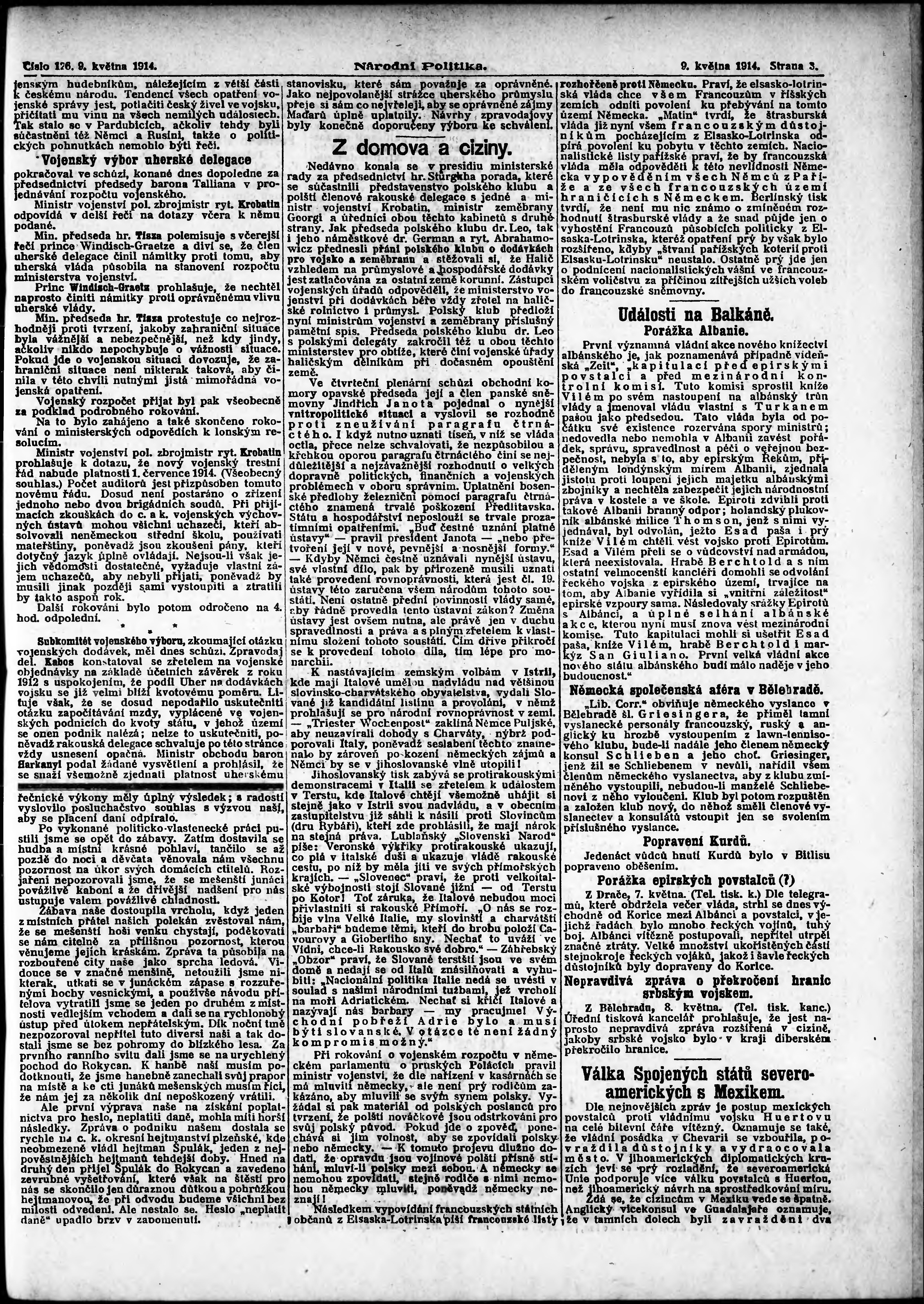 * Datum vydání výtisku: 9.5.1914 Číslo výtisku: 126 Poznámky k výtisku: ranní vydání;