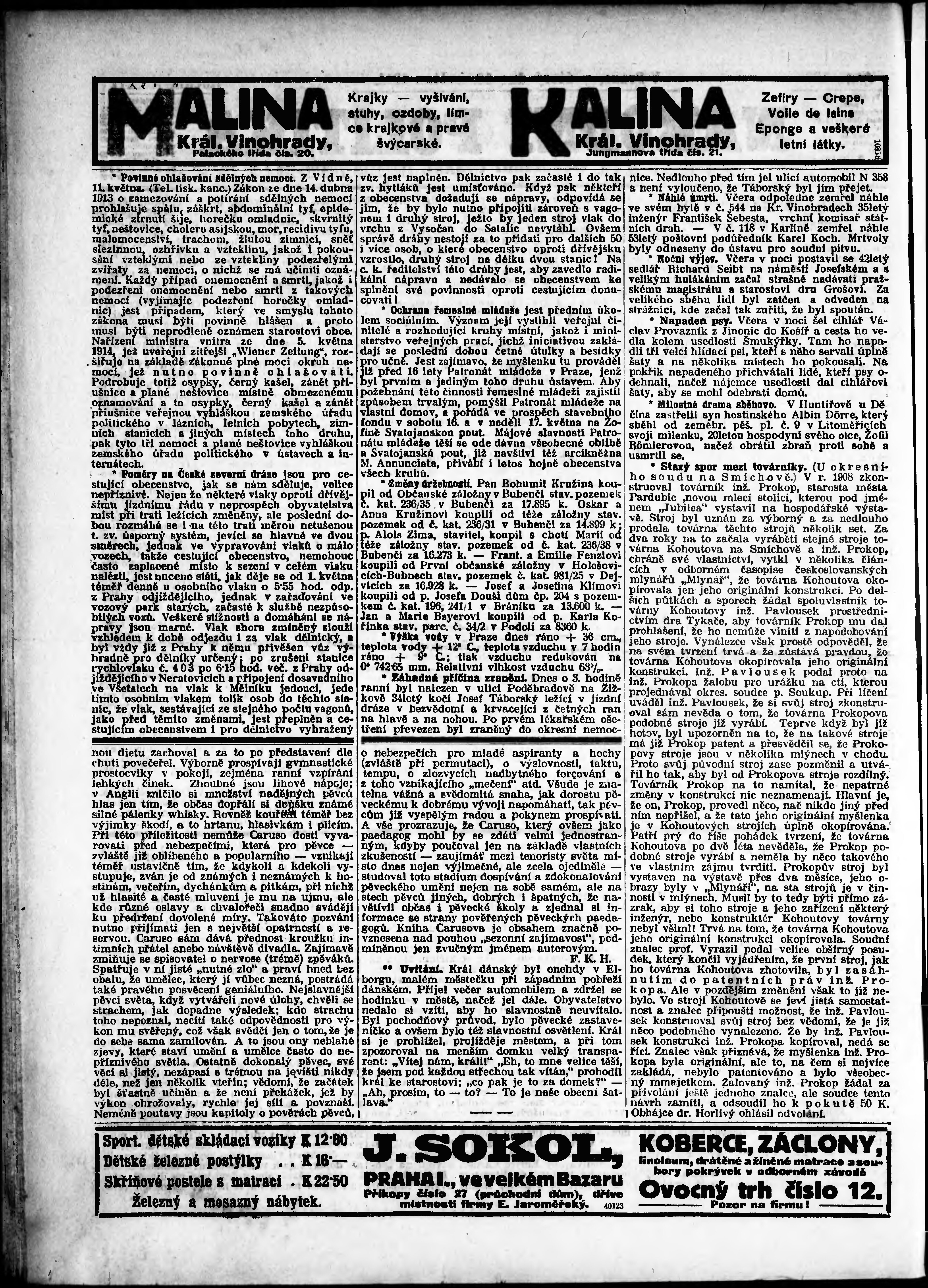 * Datum vydání výtisku: 12.5.1914 Číslo výtisku: 129 Poznámky k výtisku: odpolední vydání;
